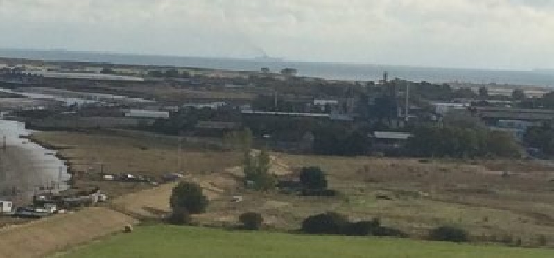 We were walking on Camber Beach when we spotted this enormous smoke-belching hulk out to sea in line with Dungeness Power Station, no camera at the ready. Fortunately Canon Richard Orchard (retired), alerted by a press report, was stationed, binoculars in hand, on St Mary’s church tower roof. He confirmed the sighting and in a flash of inspiration telephoned Canon David Frost at St Mary’s rectory who took this photo – not sufficient for total recognition but unmistakable as a foreign warship. Do our vessels belch so much black smoke and where was the Royal Navy escort, we wondered.