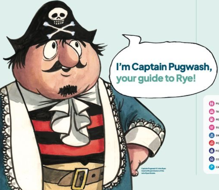 Jane Brook, Rye Chamber Chair, said she was thrilled to be given permission by John Ryan’s estate to use the cartoon pirate. “We wanted our tour guide to be a recognisable character and who better than Pugwash. Working with John Ryan’s daughter, Isabel, to explore the original artwork has been a great privilege and we’re extremely grateful for her enthusiasm for the project.”