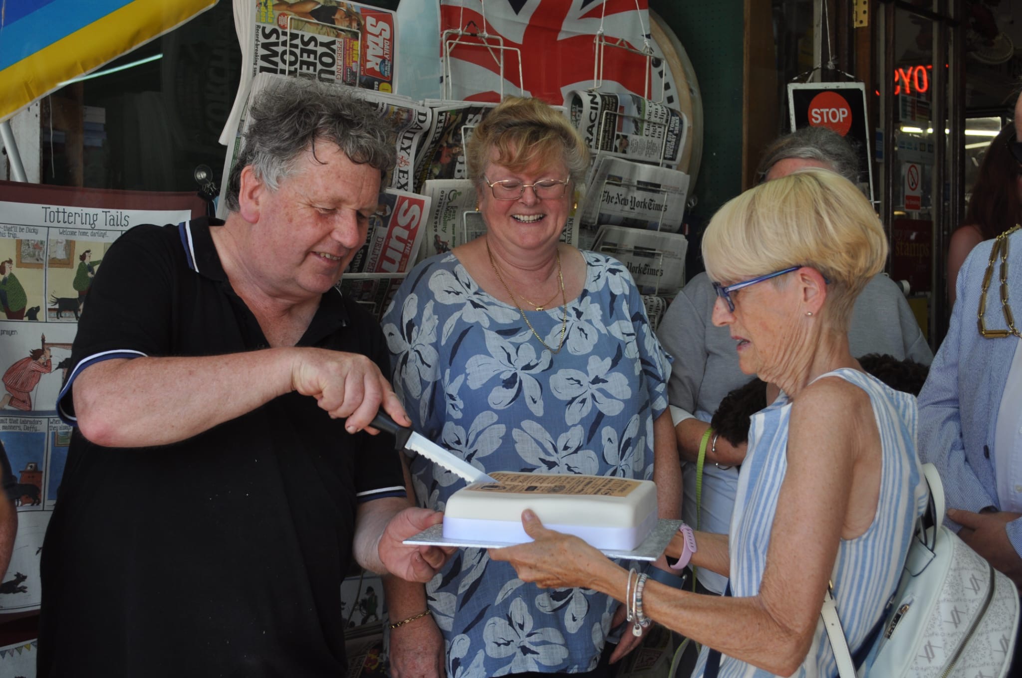 Ian, Alex and James were thrilled with the surprise celebrations: all they knew was that Rye News had asked them to be at the shop at 3pm; little did they know what it would unfold, and they loved it. After the speeches and cry everyone tucked into the cake and Prosecco.