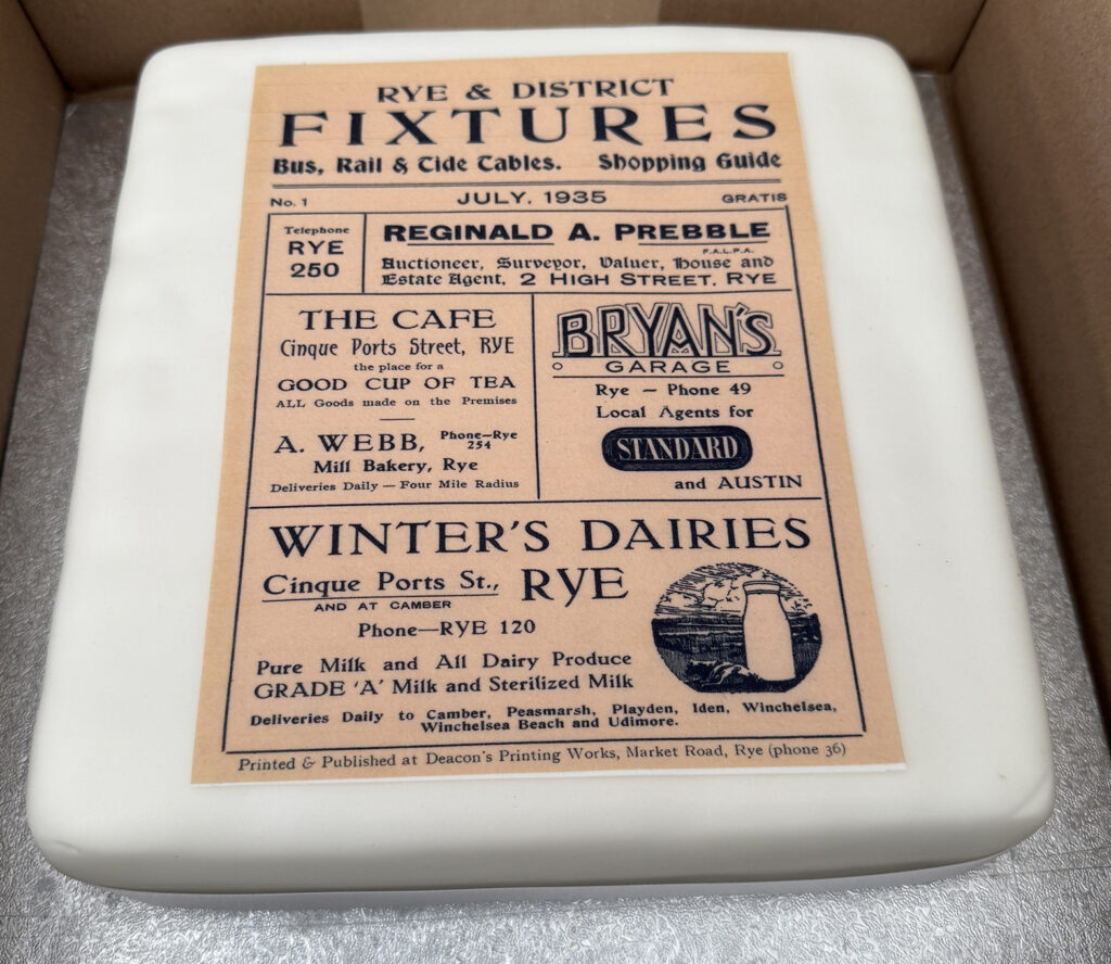 On Tuesday, July 1 Rye News organised a celebratory cake to mark the occasion. Jempson’s kindly baked and iced the cake and Lorna Dowling from Sweet Tooth Cakes provided the incredible edible topper which was a replica of the first edition’s front cover. Thank you to these two businesses for their support in celebrating the one thousand edition milestone.