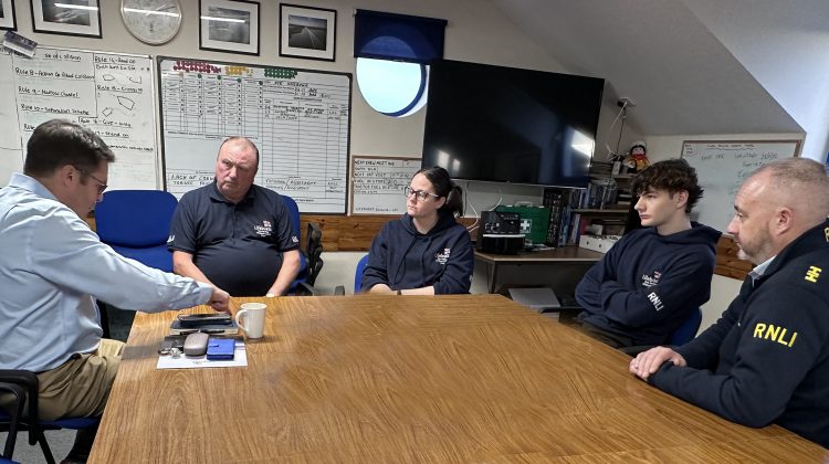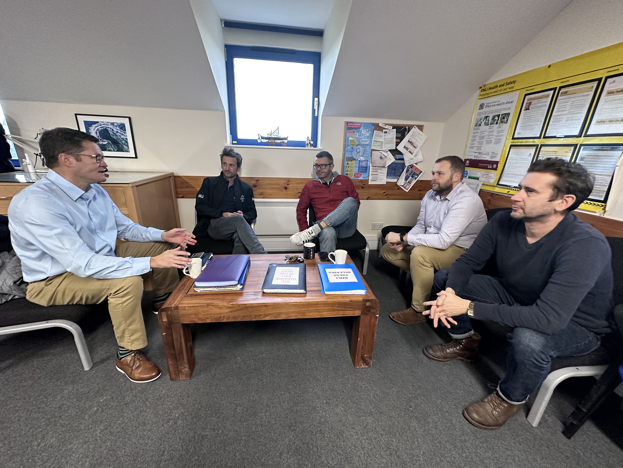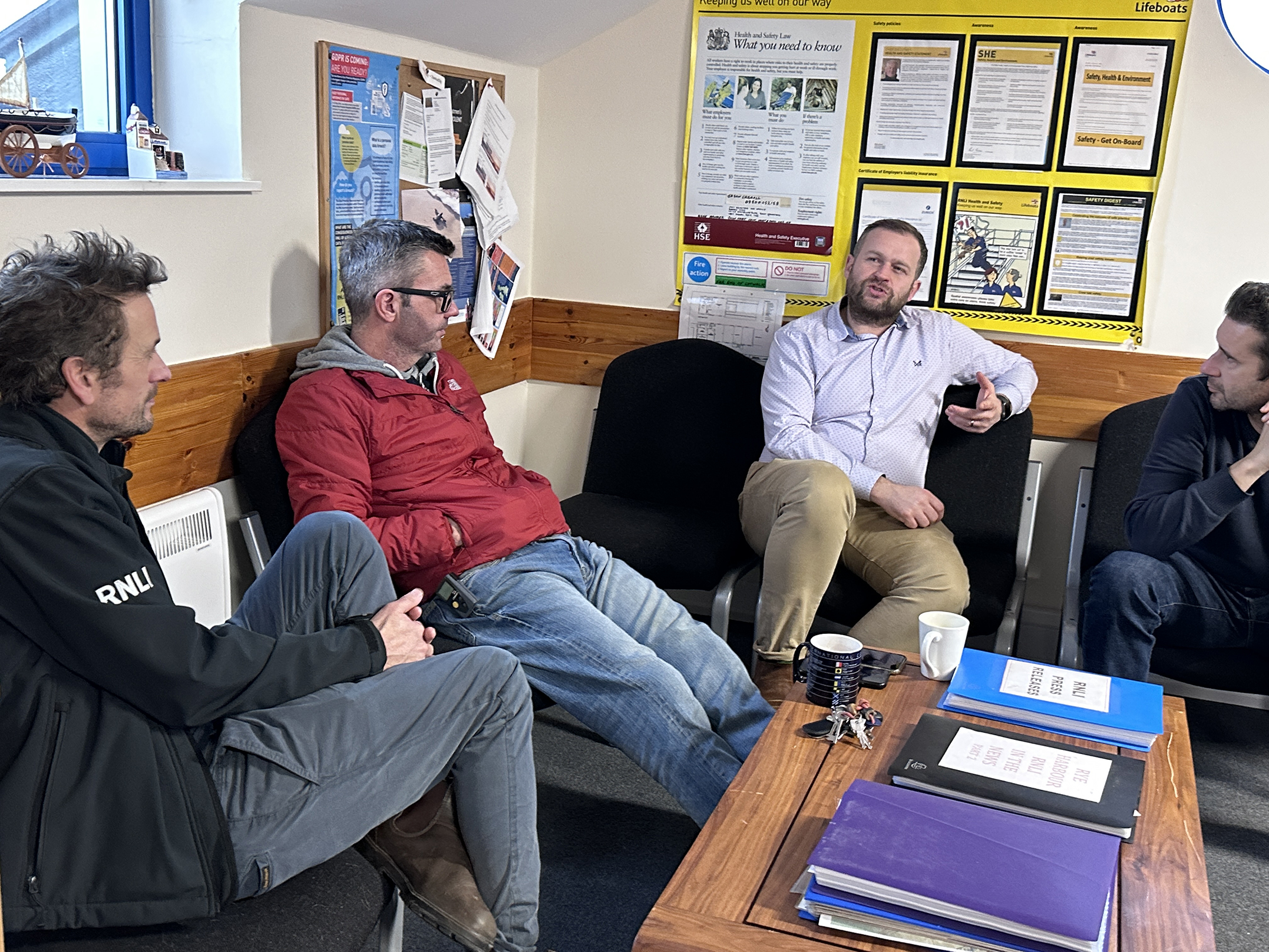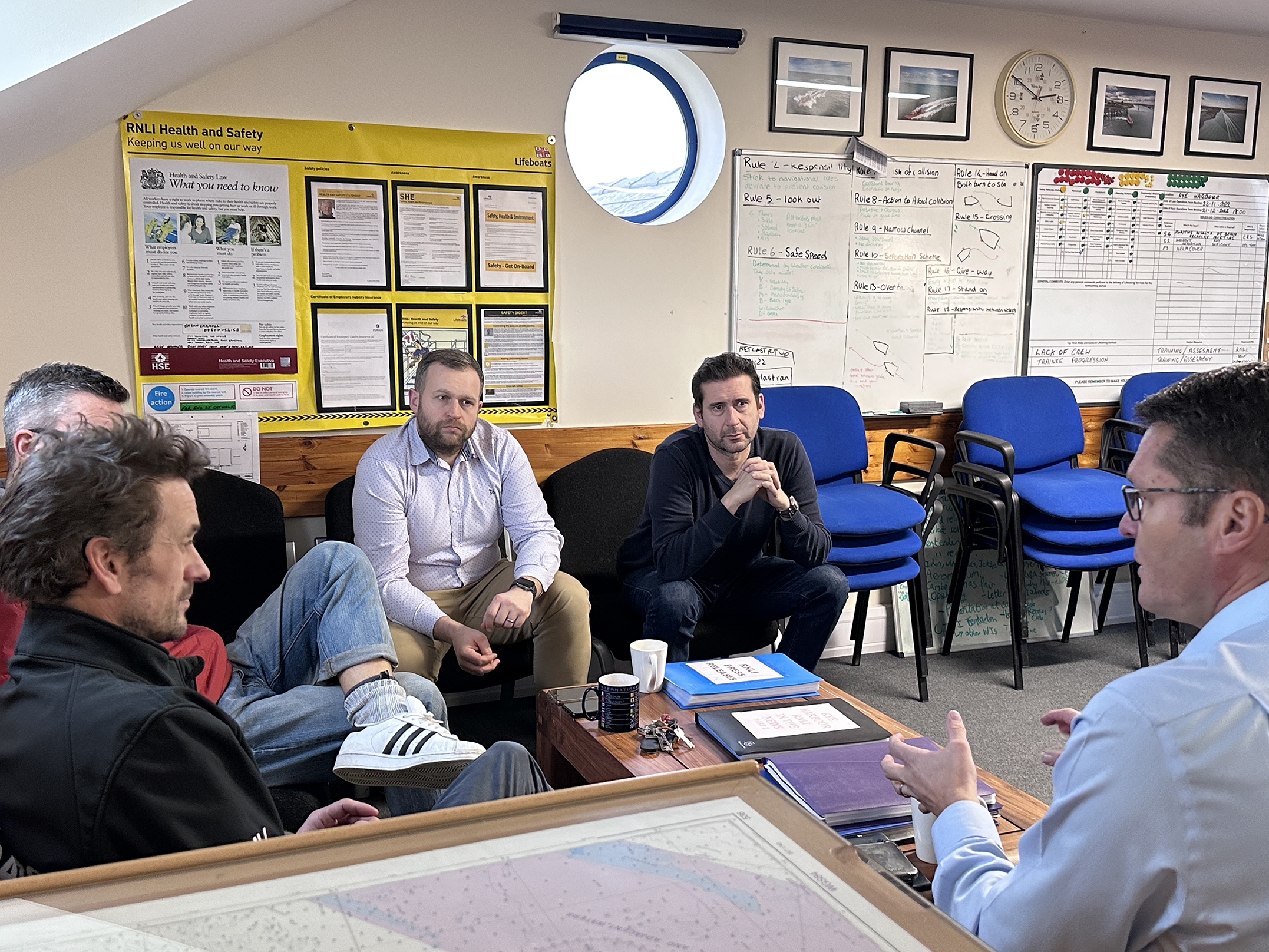 He visited with head of lifeboats, Simon Ling, and Ryan Hall, head of region. The visit was an informal one and after a tour of the newly-furbished lifeboat station they were able to visit the crew room and chat to the volunteers who were assembled there. Mark thanked them for their hard work and dedication to training and offered them his support. Simon and Ryan also chatted to crew who were able to find out the latest news from the support centre in Poole.