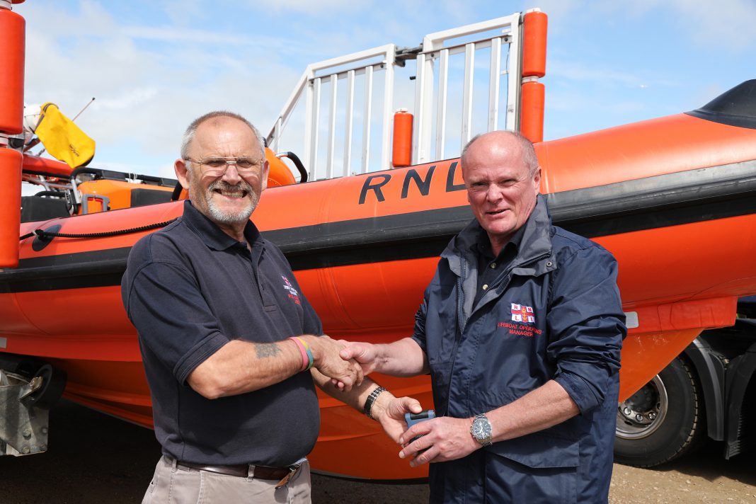 RNLI Rye Harbour lifeboat station is saying farewell to Tony Edwards, 37 years a volunteer, the last two as LOM (Lifeboat Operations Manager) and welcomes as its new LOM Mark Hall.