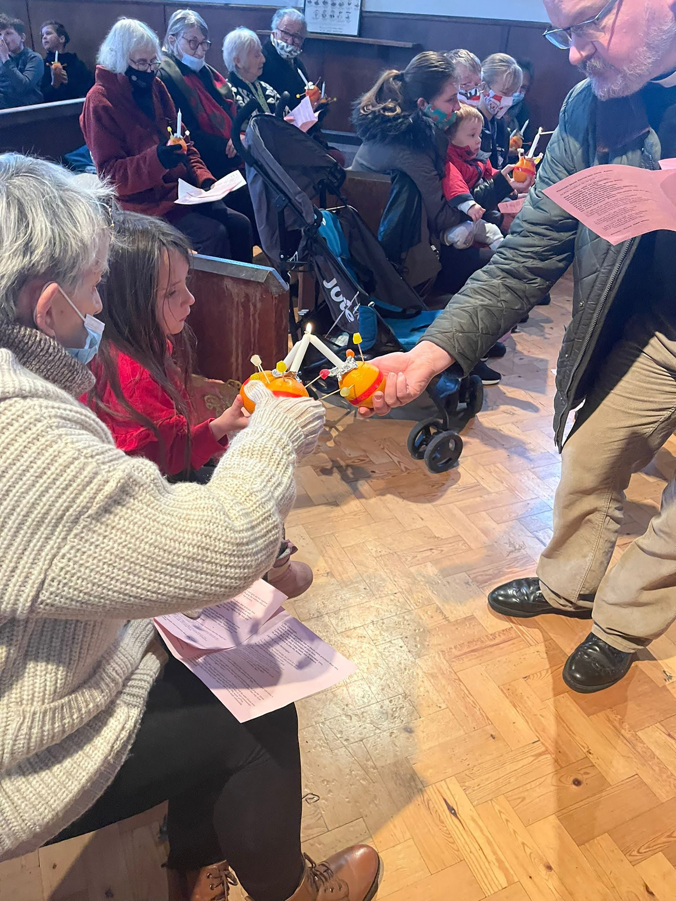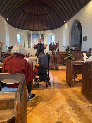 The new rector of Rye, Revd. Paul White, came to the Church of the Holy Spirit for the first time and commented afterwards: “It was an absolute delight to take my first service at the Church of the Holy Spirit in Rye Harbour on Sunday 19th December. It was a Christingle service, in which we remember Jesus coming as the light of the world at Christmas, and it was brilliantly planned by Kt and Martin Bruce, with Martin playing the hymns.