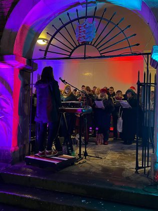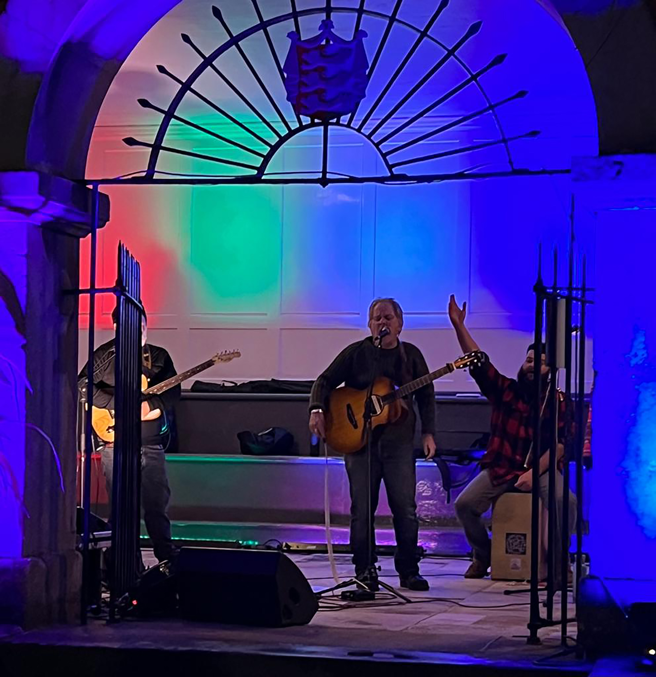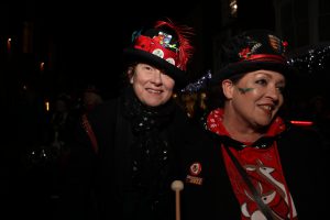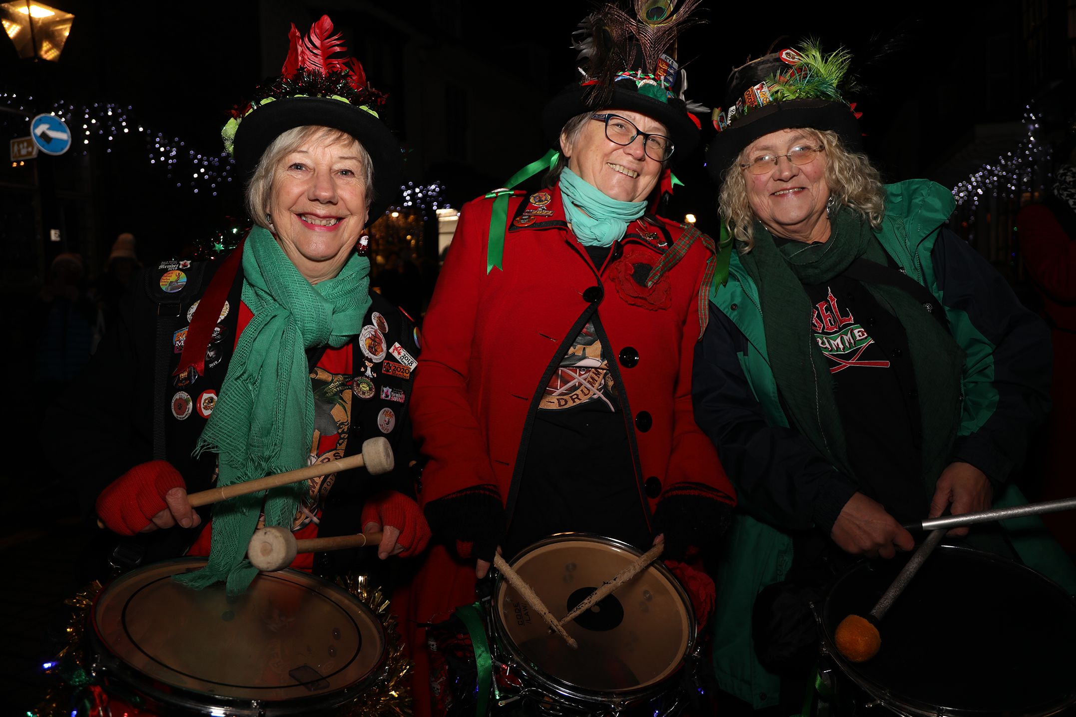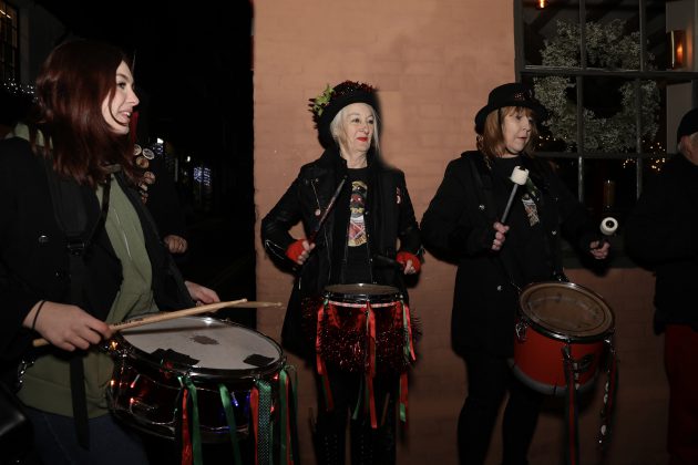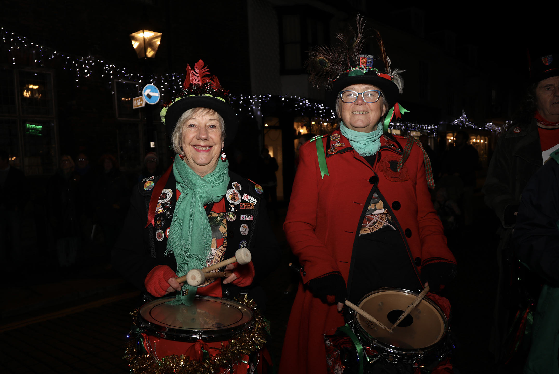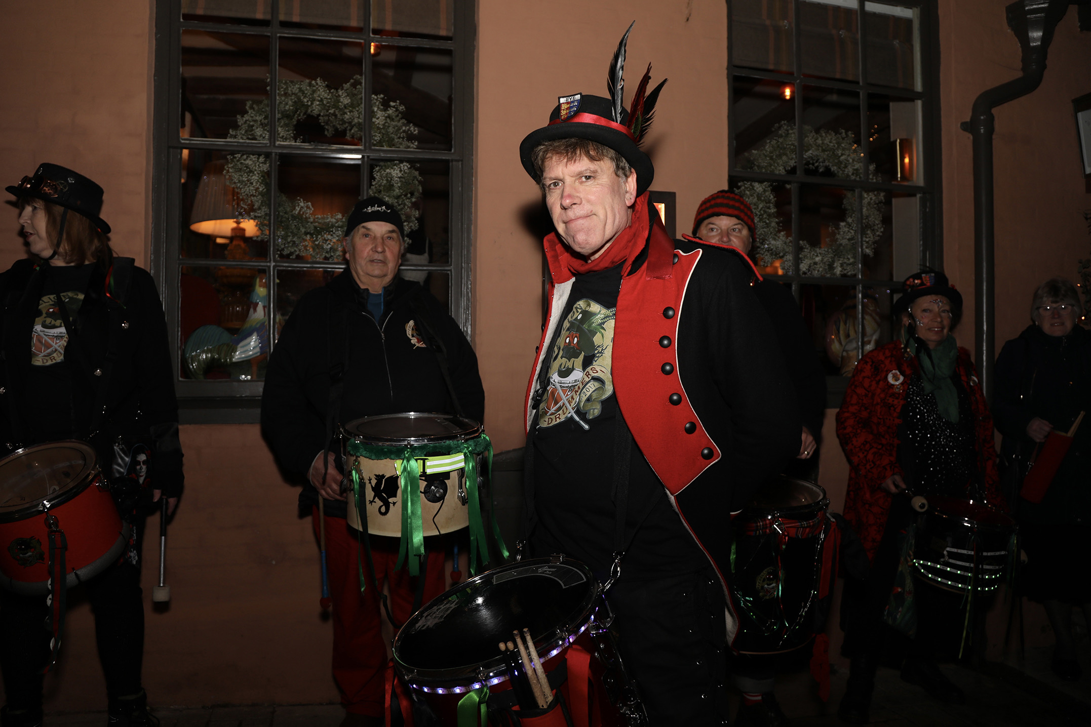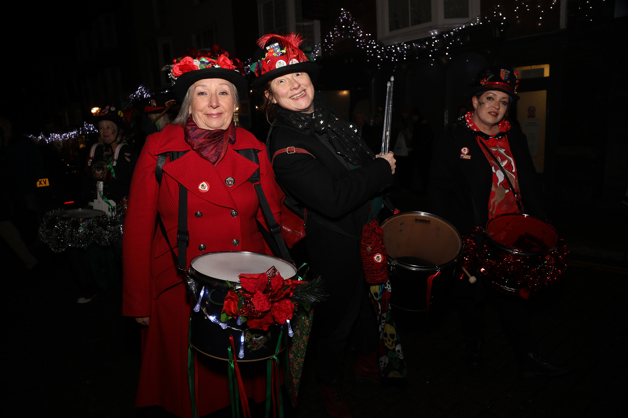 Everyone clapped and cheered “Happy Christmas!” Andi then thanked Sienna and the assembled guests, all the businesses and townsfolk in Rye who were taking part in the two-day Christmas extravaganza, and wished everyone a happy Christmas. The town was a blaze of lights, sights, sounds and smells as a group of us wandered through the streets. As we walked up the Mint the deep rhythmic sounds of Ryebellion drew us nearer.