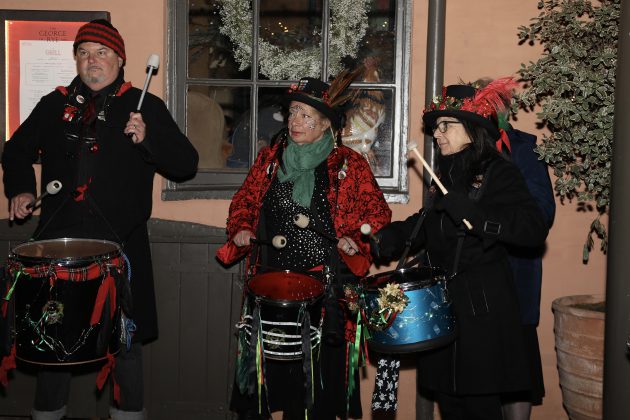 Outside the George they were entertaining an excited crowd who always enjoy the sessions with this band of Rye drummers. Next stop was Lamb House, bedecked in a New England Christmas. There was a warm welcome from the staff who had worked so hard to transform the house into the Christmases of long ago. A quartet of brass players from the Hastings Philharmonic Orchestra entertained the festive visitors.