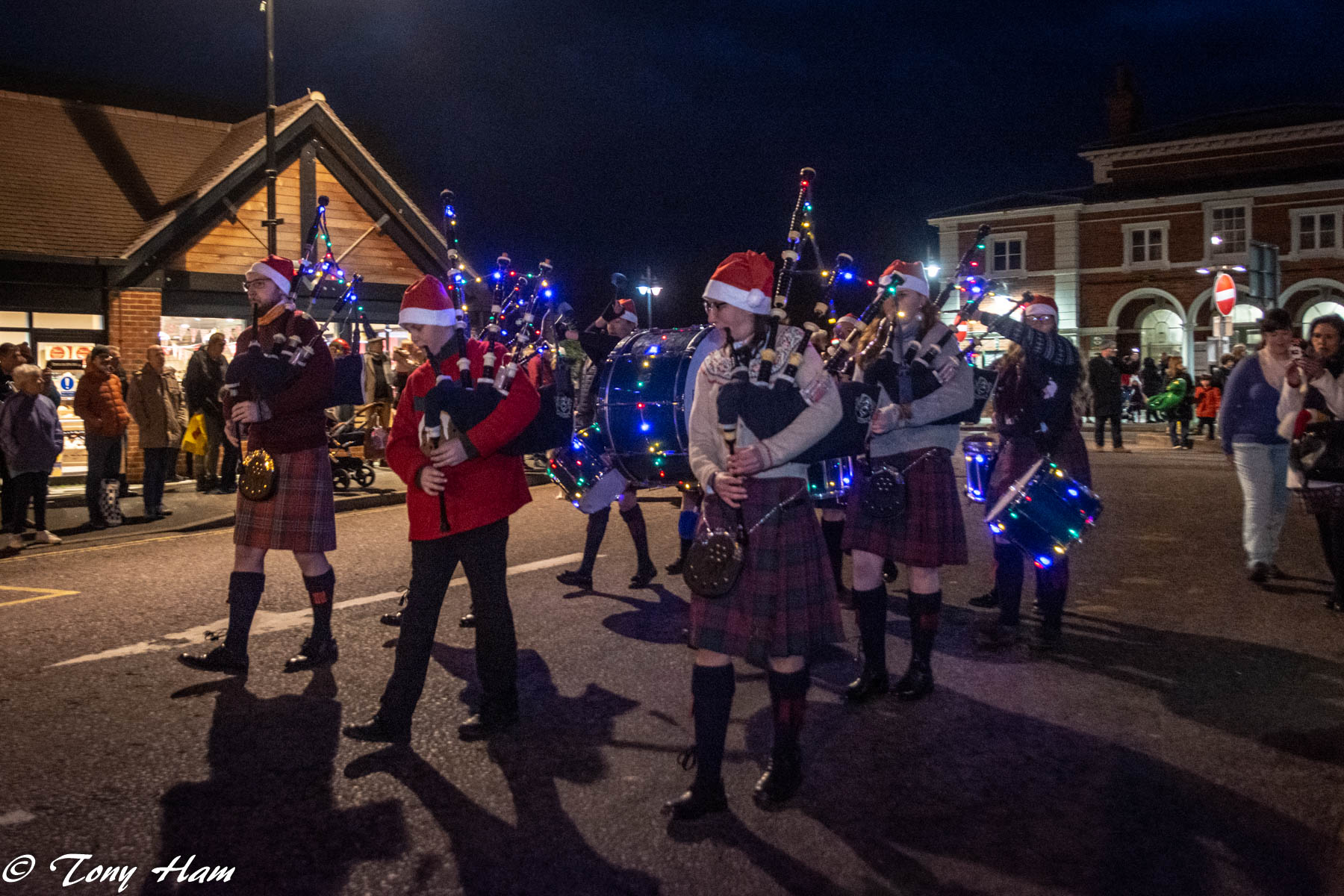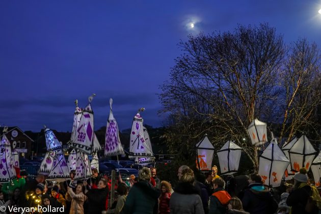And then it was time for the parade. It didn’t seem quite as big this year as previously, but, no matter, Santa was still there, giving the reindeer a rest and back in his carriage. There were bagpipes, the Ryebellion drummers, 19th century costumes, children with lanterns and many followers who joined in as the procession moved through the town.