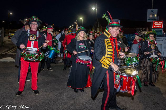 With roads closed and traffic thankfully banned from the High Street, shoppers, visitors and spectators were already starting to gather as Father Christmas, having parked his aquatic sleigh at Strand Quay, and preceded by the never-undervoiced town crier took to an immaculate and decorated carriage and pair for his procession to Santa’s Grotto, where he was kept busy for most of the day. Added to the Santa theme this year was the Elf Academy for all aspiring little helpers for Santa.
