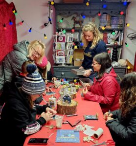 The shops, all beautifully decorated in their Christmas best, hosted events, displays and workshops. Emily Neal from Tiny Timber was creating Christmas scene decorations at Ethel Loves Me, and St Mary’s, already the venue for the Christmas Tree Festival, held a Christmas market.