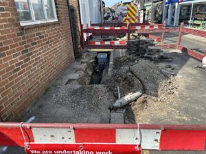 Teams from UK Power Networks were called to the scene on Monday, May 19. A large hole was dug in the road exposing cables. Power was turned off to a number of homes and shops because of a faulty piece of underground network equipment.