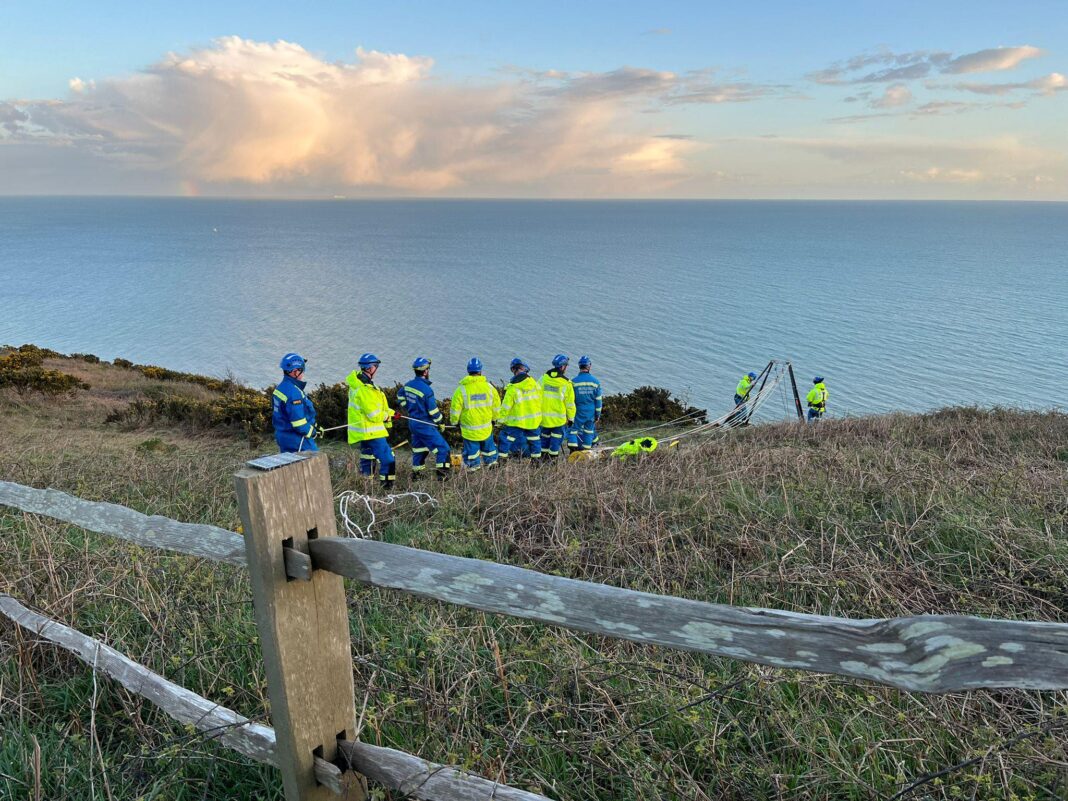 Coastguard teams worked with Sussex Police to bring the casualty to safety, before being transferred to an ambulance.