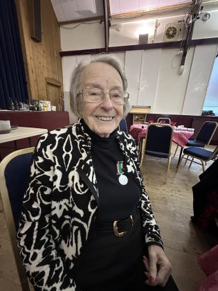 Inge Davie proudly wore her 40-year volunteer medal to the meal as she is so pleased that she has been able to help for so long.