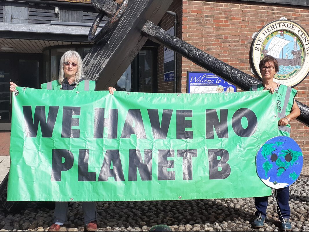 Concerned about climate change, I stood on Strand Quay with a friend on Friday, August 28 with our banner “We have no Planet B” and we received heartening toots and support from passers by.