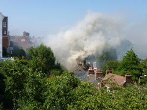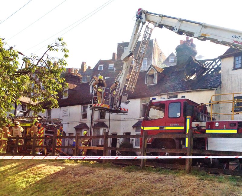 An outbreak of fire in the roof and first floor of a property in Fishmarket Road on Wednesday July 20 was reported no less than 17 times in repeat calls to the East Sussex Fire & Rescue Service. Believed to have been caused by an electrical fault, the fire broke out at around 3:30 pm causing severe damage to the building and further damage to the adjoining properties – taking nearly two hours to extinguish with the help of appliances from Rye, Broad Oak, The Ridge and Bohemia Road in Hastings, Battle and Lydd including a mobile access platform spraying water from above.