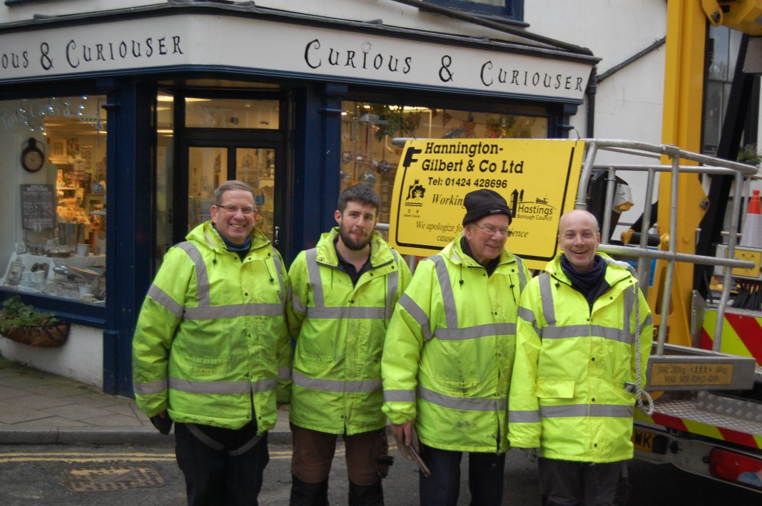 A bright yellow cherry picker worked its way along the High Street on Wednesday, January 7, writes Kenneth Bird. Electrical engineers, Hannington Gilbert, spent most of the day dismantling Christmas lights and their fixings, causing temporary road closures along the way. The strings of white bulbs stretched across the street had become an eyesore, especially as just one section – from the top of Hilder’s Cliff to East Street – had worked. Half the bulbs were broken or filled with water, according to Clive Gilbert, and were unsafe.