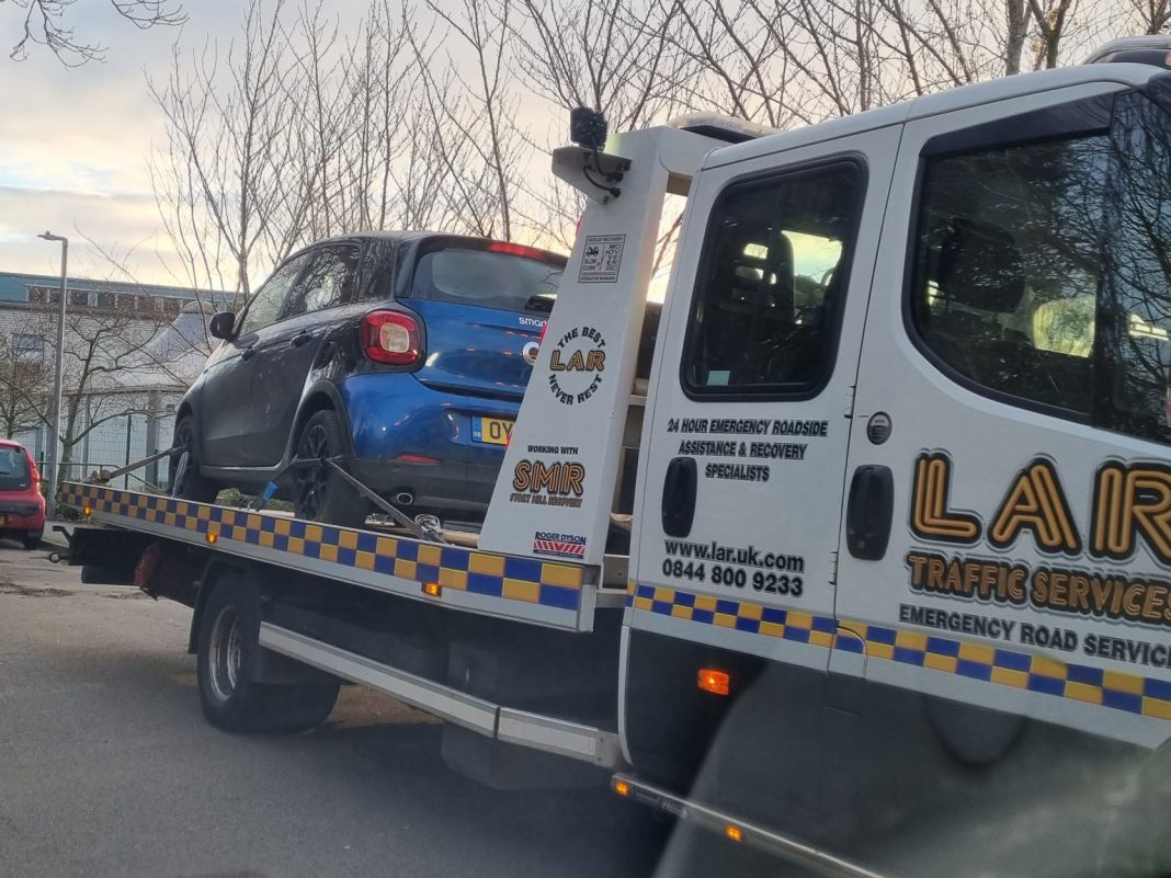 Whether in response to the report or by coincidence for which no credit is claimed, a breakdown vehicle arrived a few days later to remove the vehicle.
