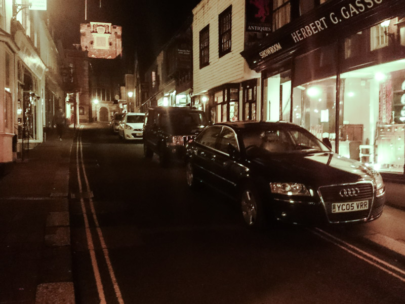 But the end of the main holiday period has also resulted in an outburst of scaffolding for urgent repairs, as it does in many historic holiday towns with narrow streets, and overnight parkers representing a hazard where they block access to emergency vehicles – such as at the top of Lion Street in the above picture.
