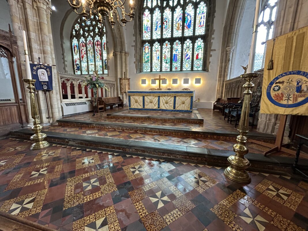 Facebook photographs of beautiful tiles discovered under the chancel carpet at St Mary’s prompted me to investigate and to meet up with Rev Paul White to find out more.