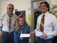Rye 1st Scouts will soon be moving into a new building and the money they have been awarded will go towards new equipment. Rye Scouts will be holding an open day on October 4 when everyone will be invited to see their new home and a display of scouting activities. Rye Scouts Cheque