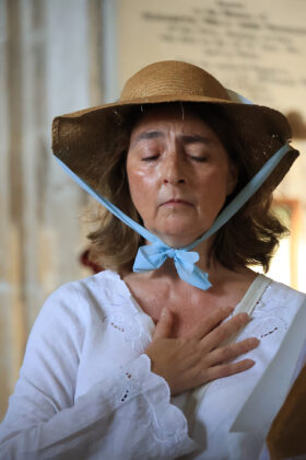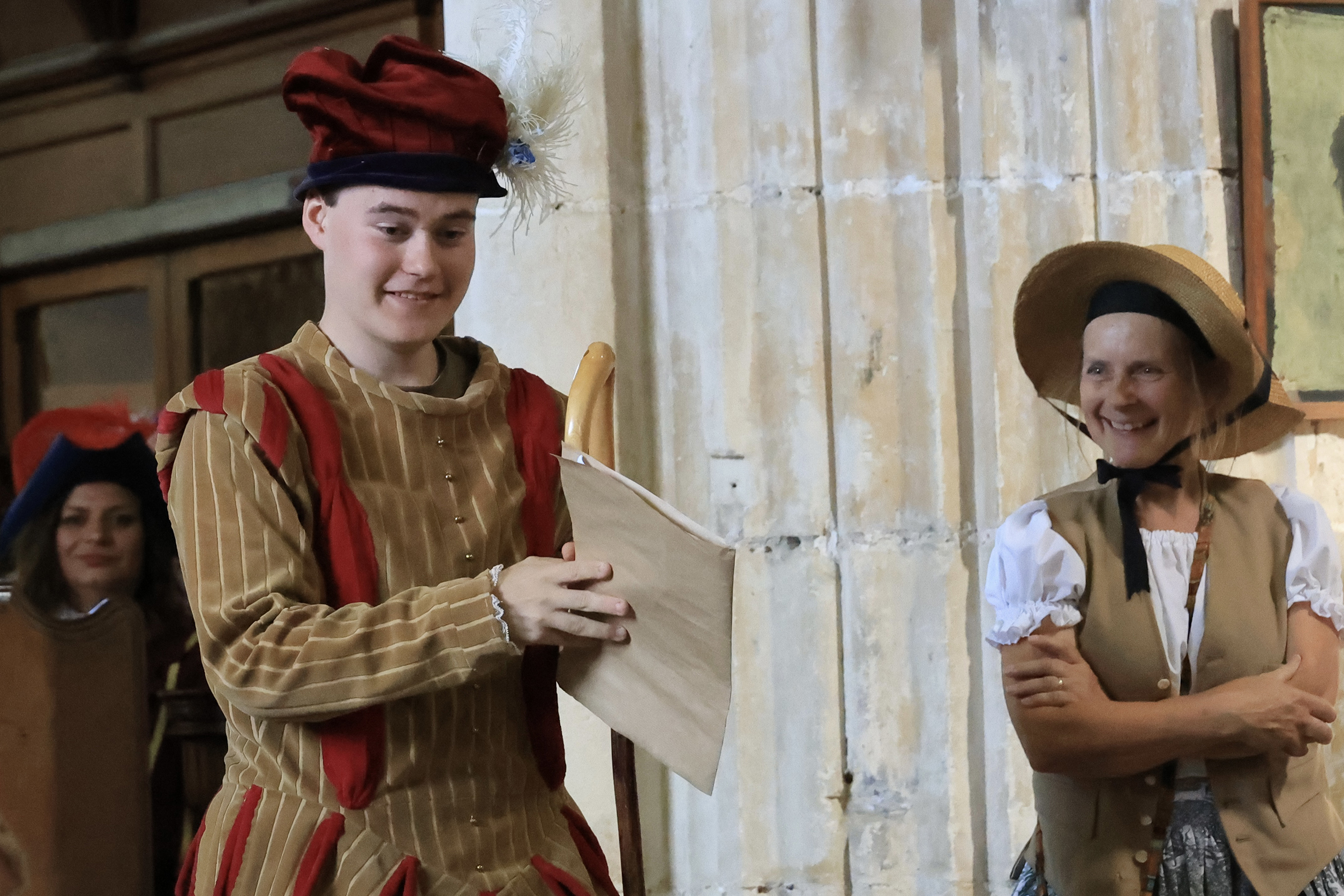 Pat Driver from Rye Players summed up the day in her inimitable style: “Fletcher Day was sensational! Huge congratulations to everybody involved…and there were so many! Let’s attempt this. Gulp. Simon Parsons and his merry crew at @ryeheritage who organised the day; the Sing it Out Choir who went full Tudor outside and inside the church; Andy Stuart, the mayor of Rye; Fr Paul White, for the loan of the beautiful St Mary’s and for writing a masterpiece script for our fire and brimstone vicar, Richard Fletcher; Martin Bruce who cried so convincingly to open the event; Arabella Ansar, the deputy town crier who oyez’ed her socks off; the iconic Ryebellion Drummers; Kt Bruce who was, as usual, everywhere for Rye News and who else? Hmm. Oh, us! Rye Players.”