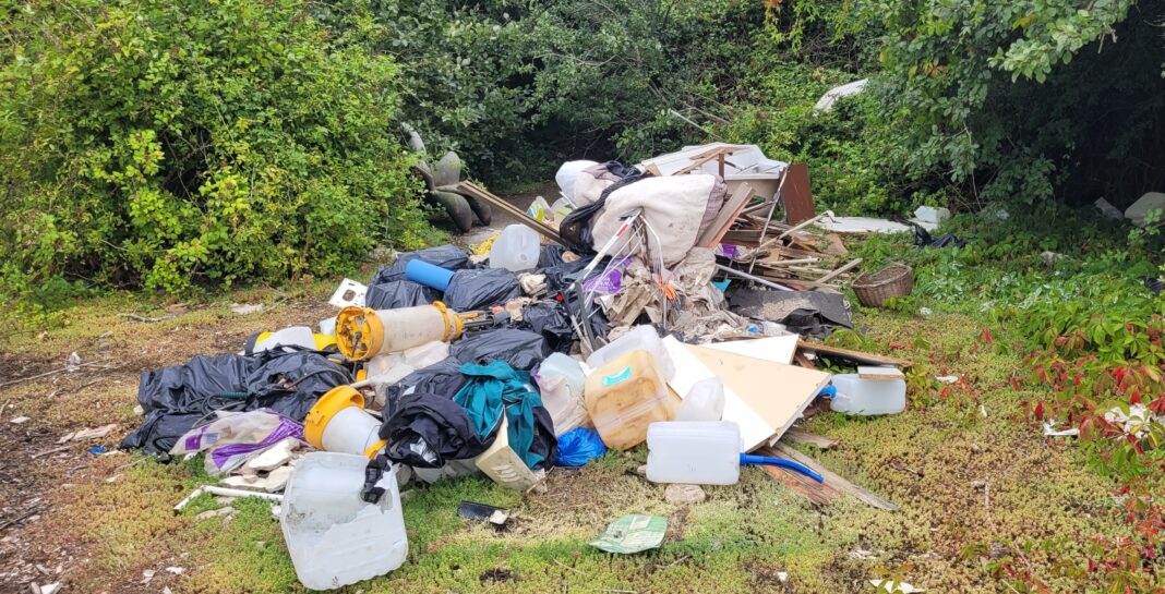 The fly-tipped rubbish contained household waste including books, furniture and children’s games, and unwanted items from house renovations including a bath, wood and building materials.