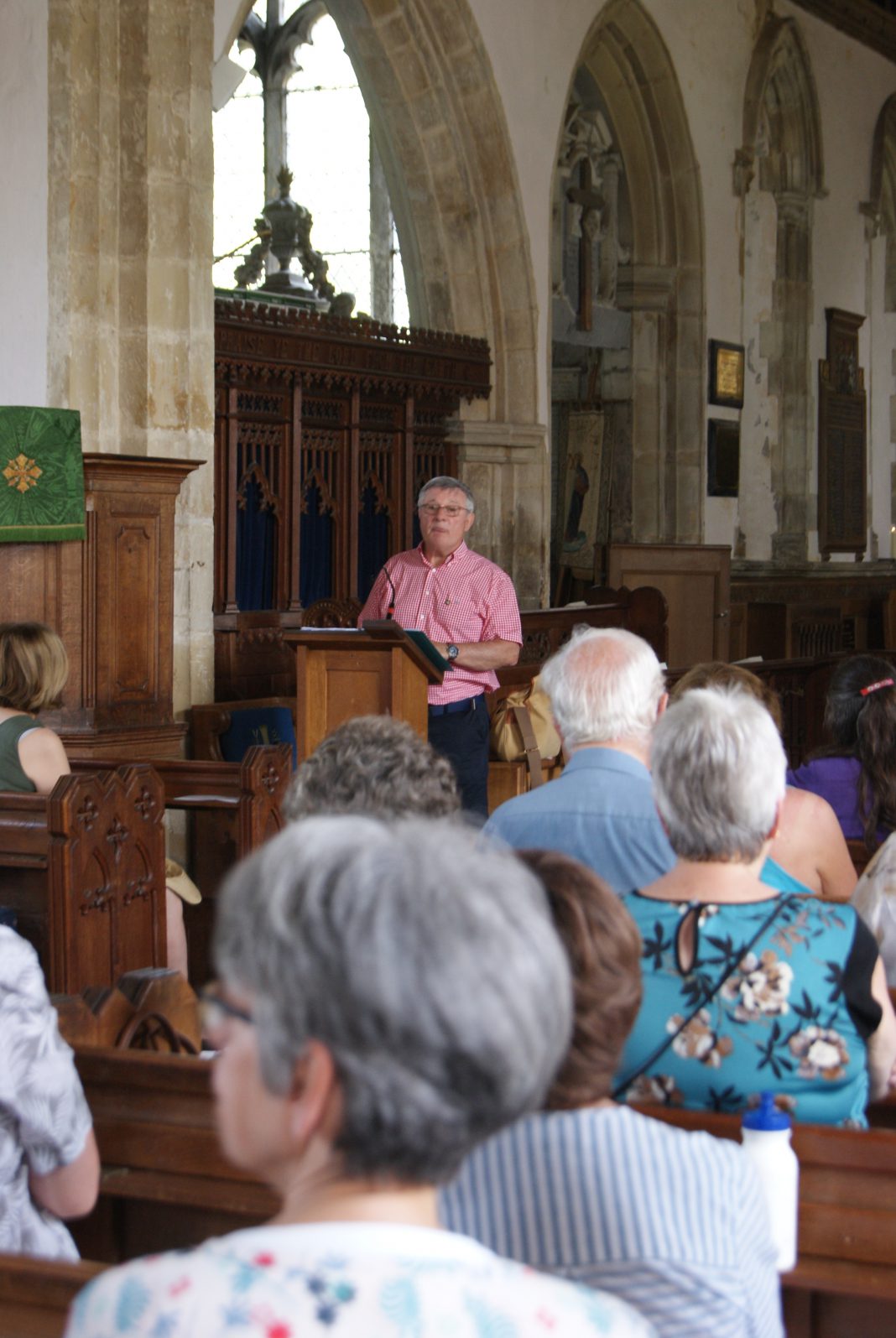 Annually, the Friends of St Mary’s Rye make a mid-summer visit to two or three local churches and then take tea with a Women’s Institute. This year Chairman Anthony Kimber opted to consider churches on the edge of the Rother Valley and take tea at Stone. On June 28, with the temperature rising towards 30C, some 35 Friends joined two Rye Community buses for the outward journey.