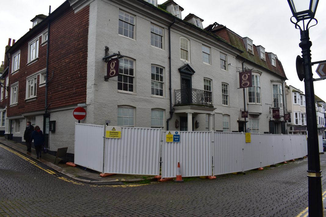 Following a meeting scheduled last week with the ESCC highways authority, it is expected that scaffolding will very shortly now be erected outside the George Hotel.