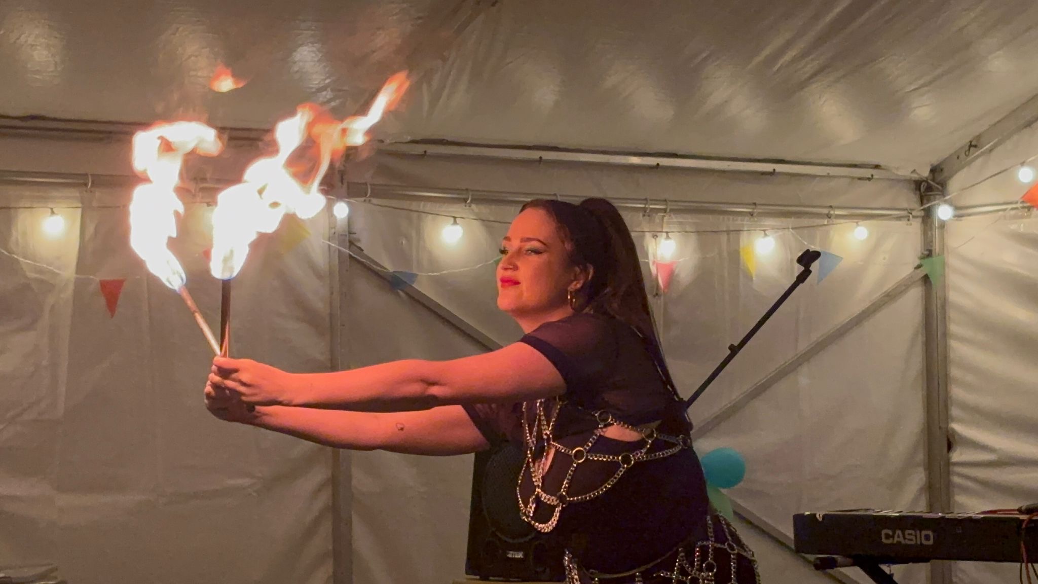On Friday, the youth event attracted around 60 young people from age 11 to 17 who enjoyed a penalty shootout, live music, a DJ, and aerial circus performers including a surprise fire-eater.