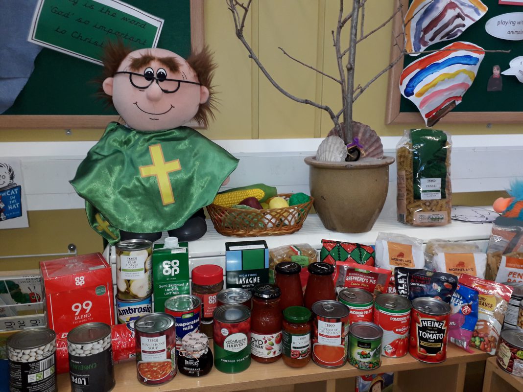 Peasmarsh Church of England Primary School had their harvest service in school this year rather than at the local church. All children contributed with gifts, prayers, poems and songs in order to celebrate. Food collections were abundant and will go to Rye Food Bank.