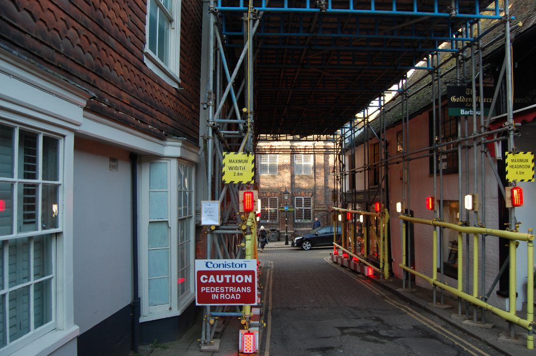 A notice attached to the scaffolding in Lion Street states that the licence from Rother District Council to erect scaffolding is valid until February 23, but it seems possible that application may be made to extend this period.