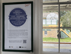 If you’re not able to visit the station you can still see the plaques and read their fascinating backstories on my website (perhaps while you’re on a train!). Includes William Tress the architect of Rye Station and Sarah Ashenden’s role as Rye station’s crossing gatekeeper – just one of many women along the Marshlink responsible for the gates.