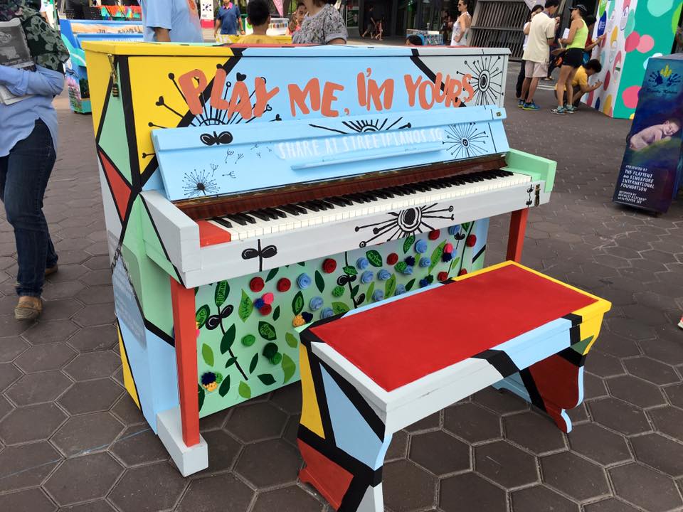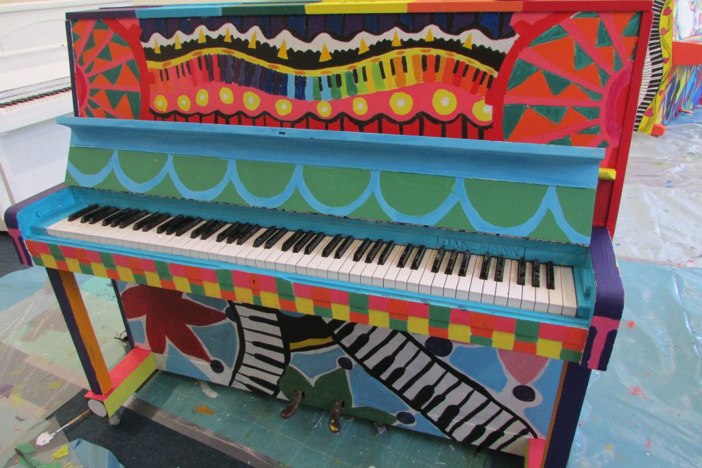 No, for a bit of fun it was decided to keep piano number 3 white and give all our younger visitors the chance to dip their hands into ‘magic’ paint and sign the piano with their individual handprints. (Don’t be alarmed mums and dads, the paint washes off . . . eventually!).