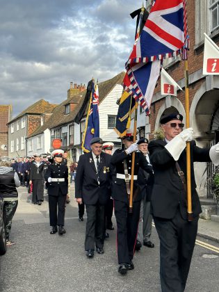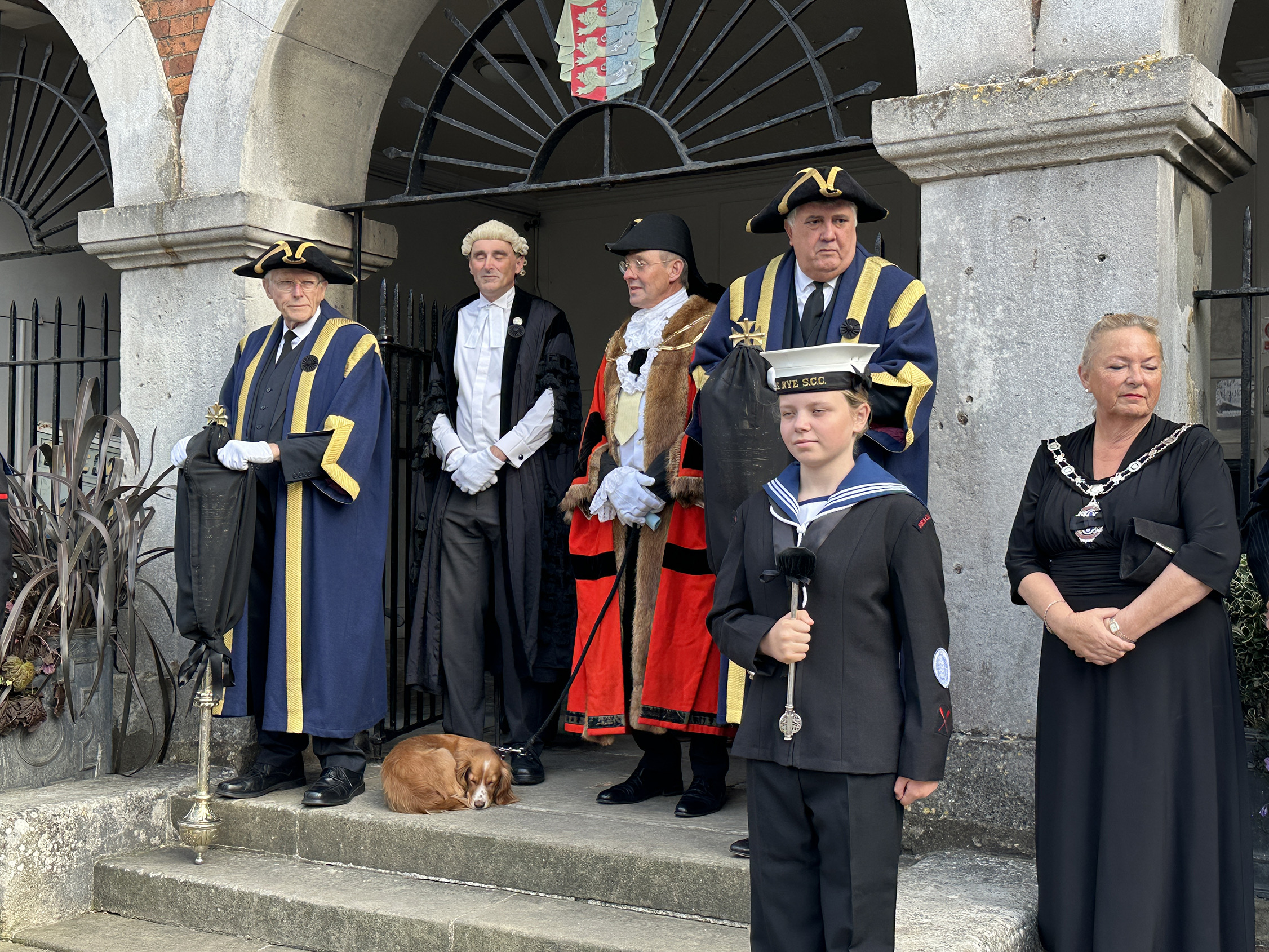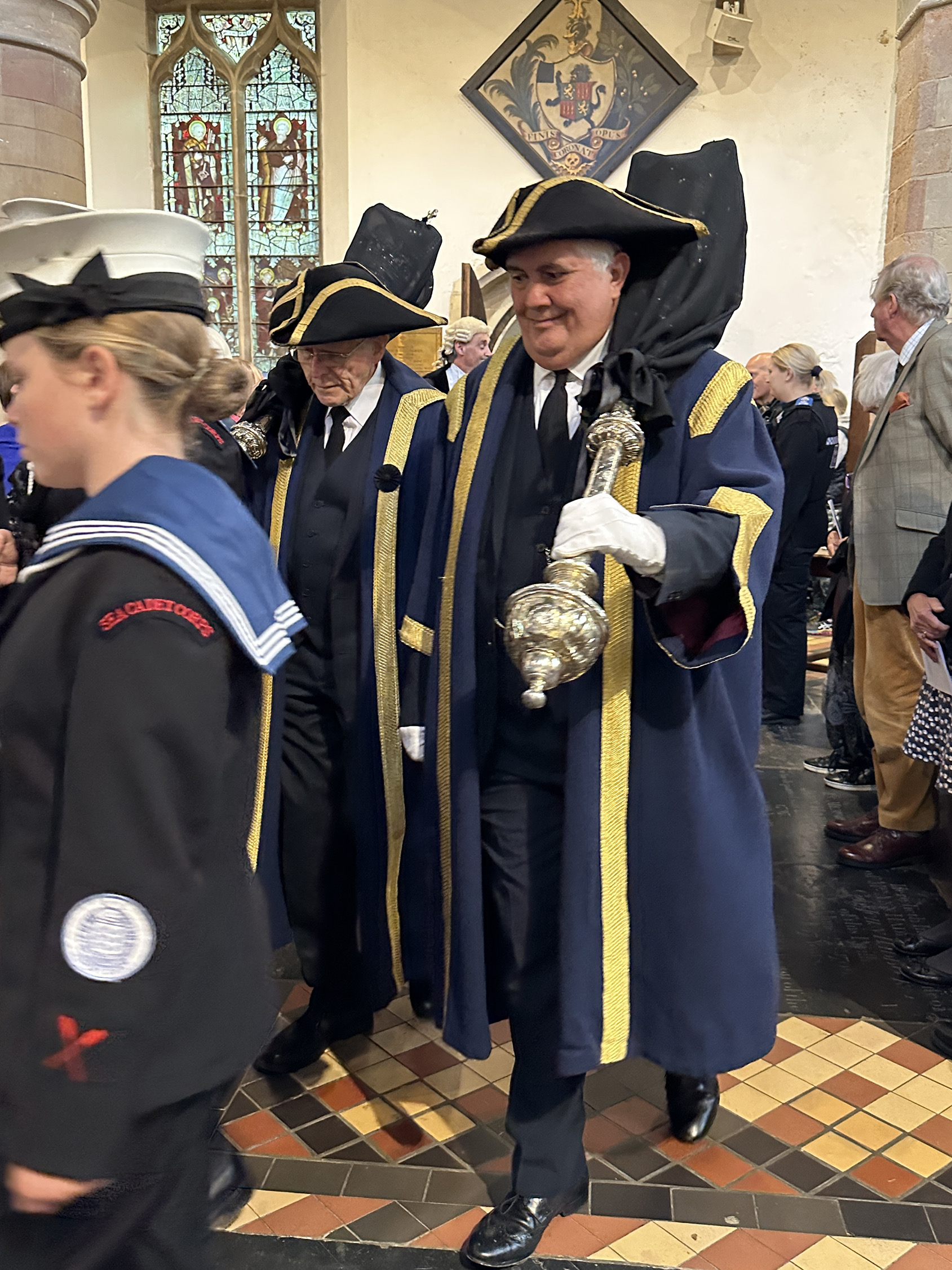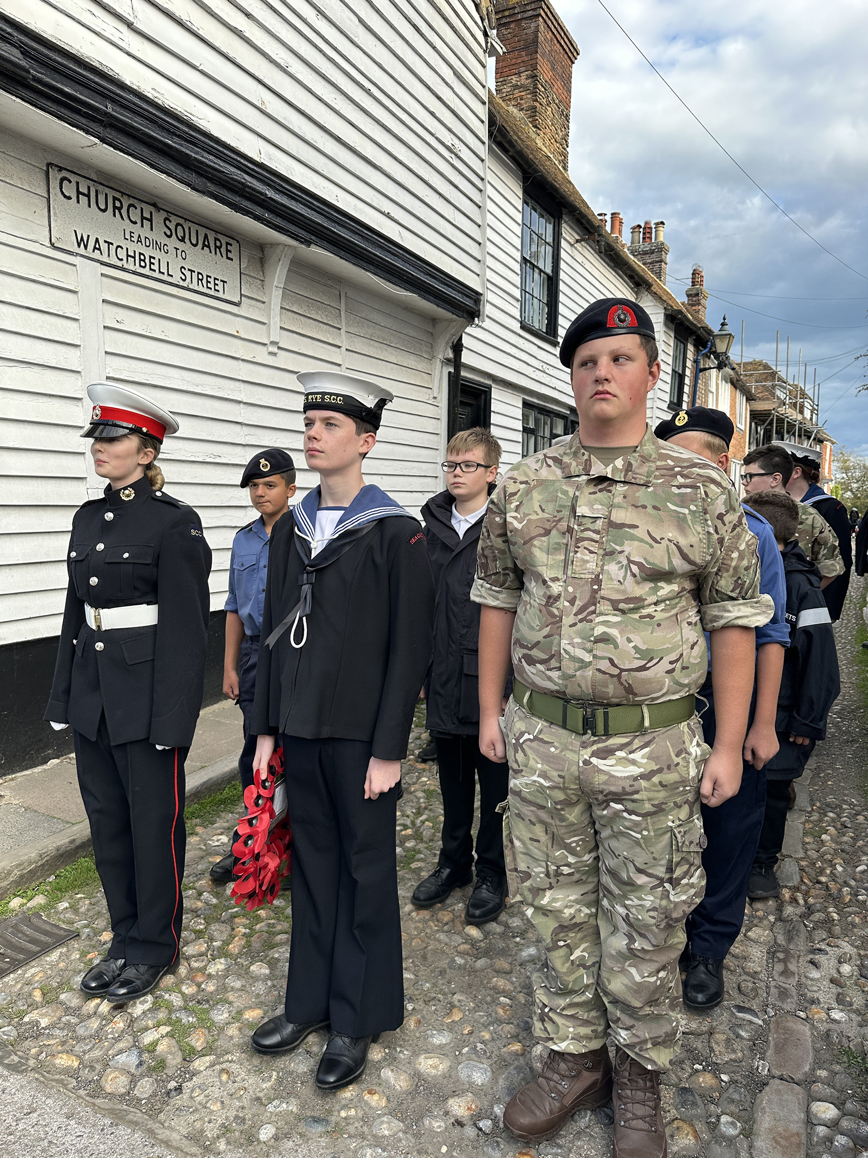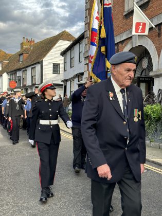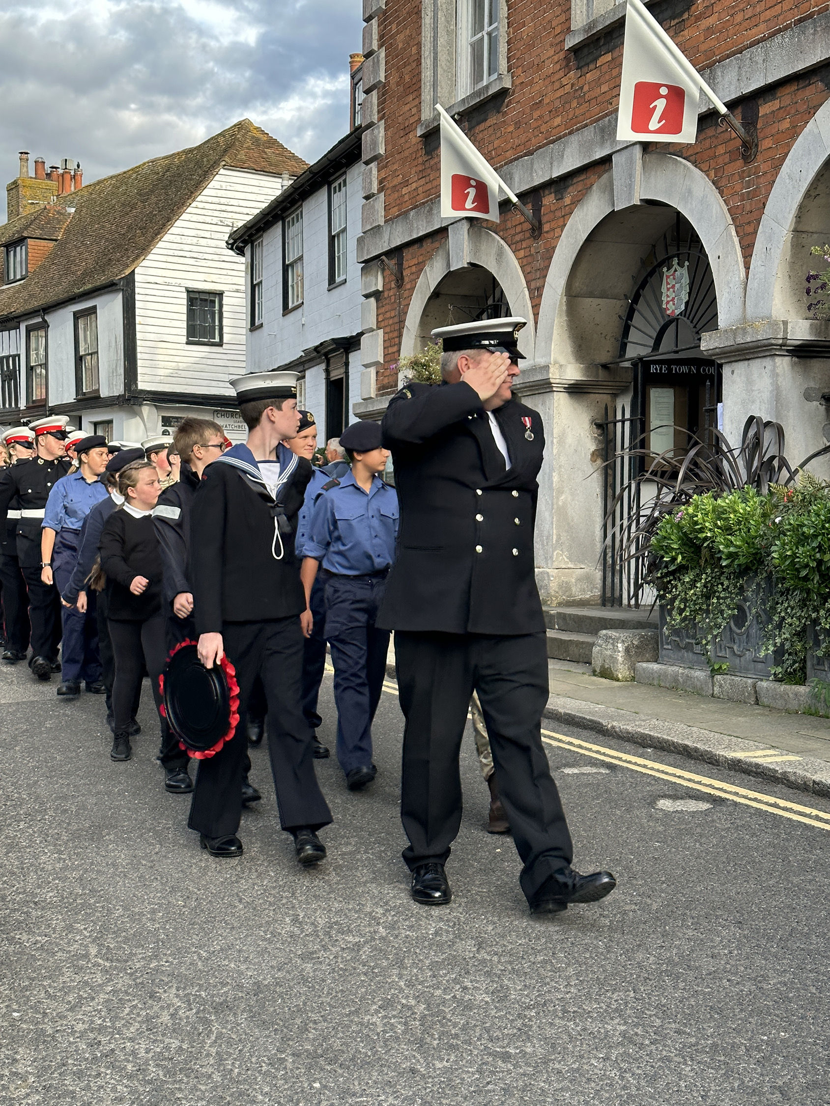 The Royal British Legion (RBL), Sea Scouts and RNLI standards were paraded with representatives from all three services. The procession formed in Market Street while the mayor and council took their post in the Buttermarket.