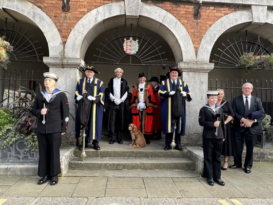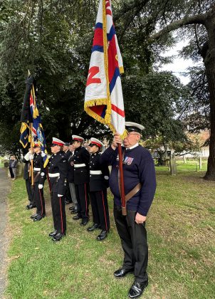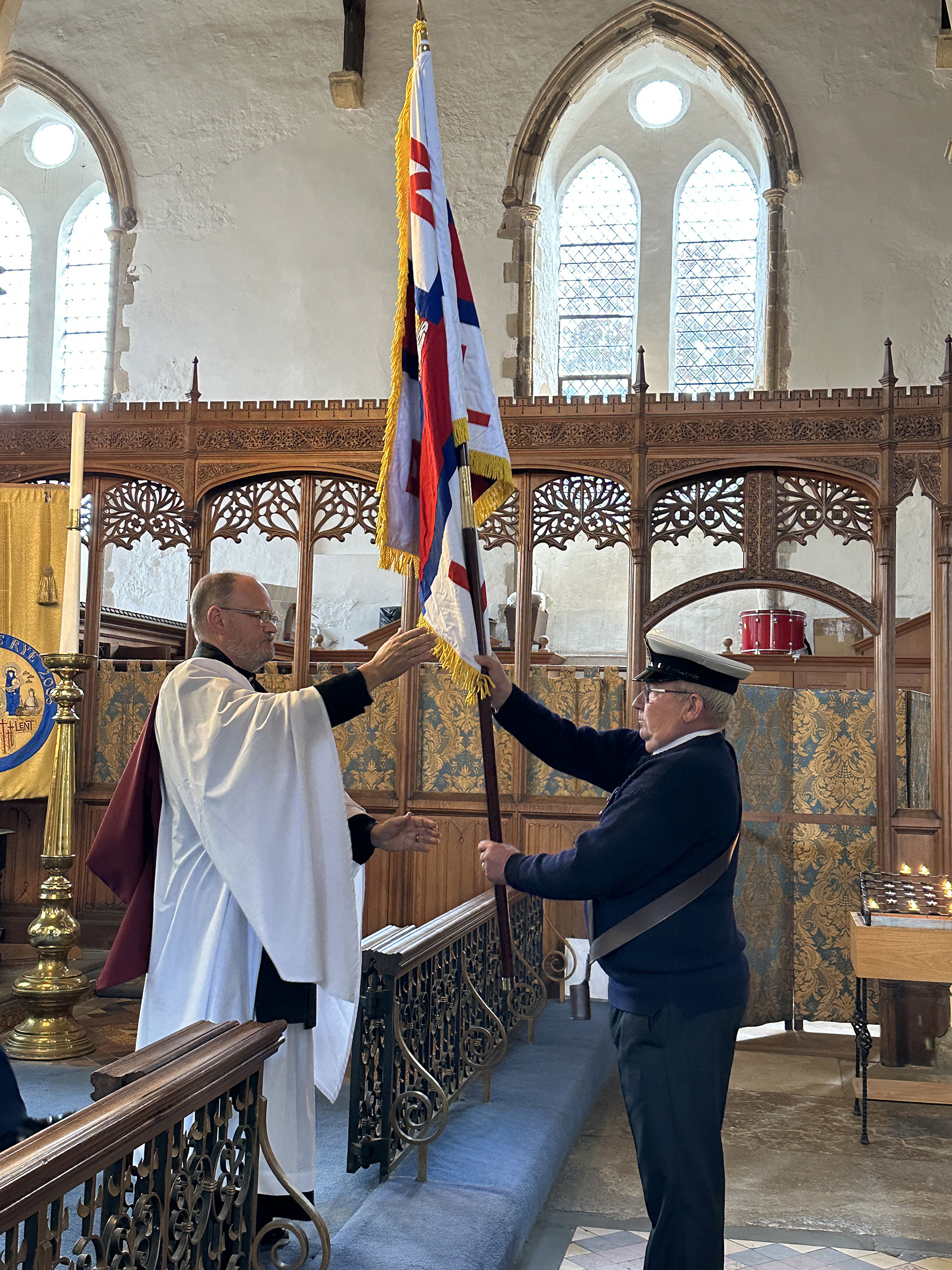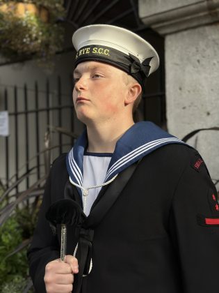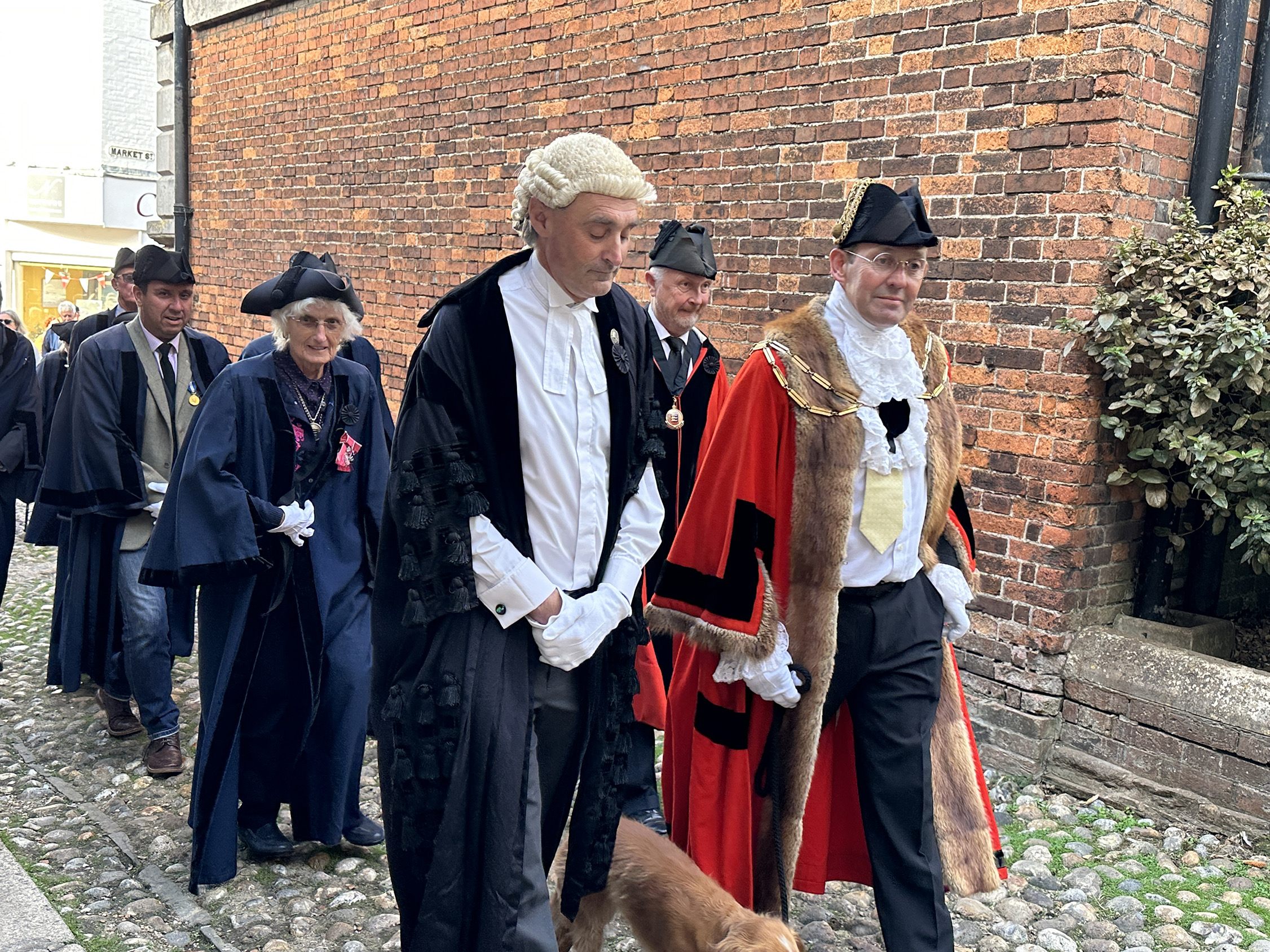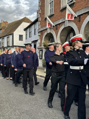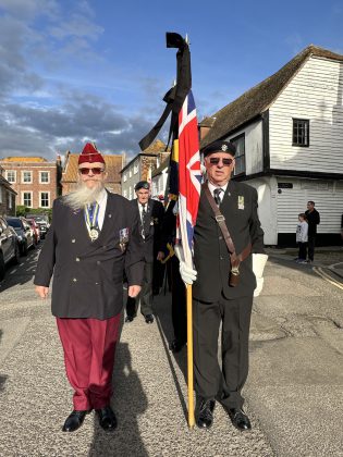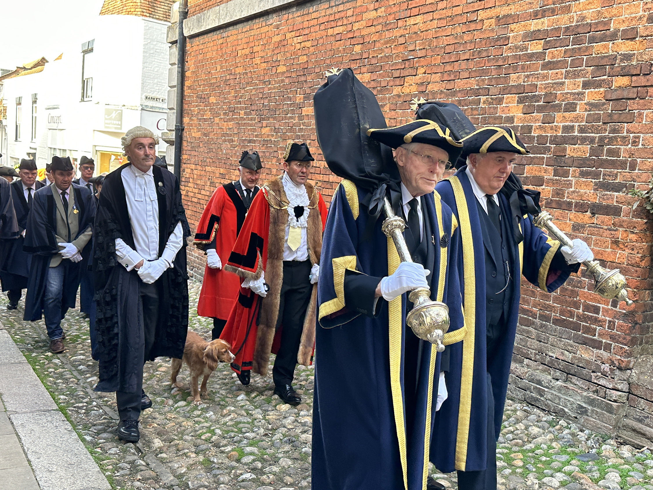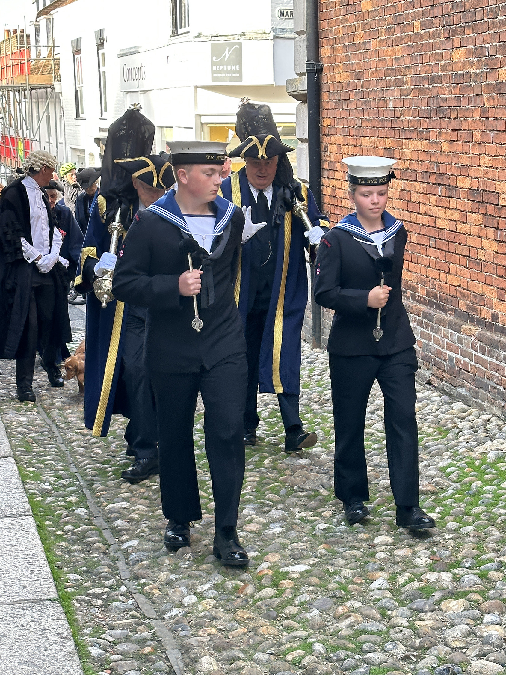 The Royal British Legion (RBL), Sea Scouts and RNLI standards were paraded with representatives from all three services. The procession formed in Market Street while the mayor and council took their post in the Buttermarket.