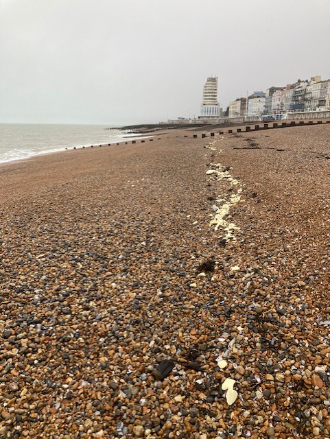 More chunks of the insulation foam have also washed up on the beach on the Rye Harbour Nature Reserve and Sussex Wildlife Trust staff and volunteers are working to remove as much of the material as possible before it breaks down into smaller pieces. They are working with Rother District Council sharing information about the spill and its removal.