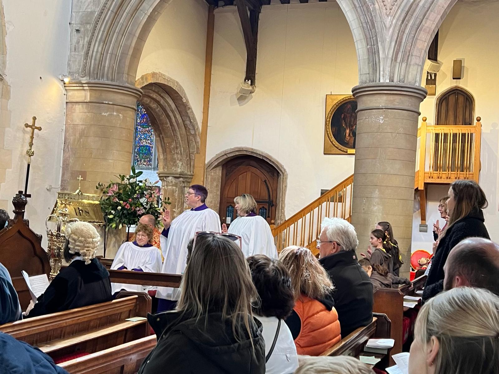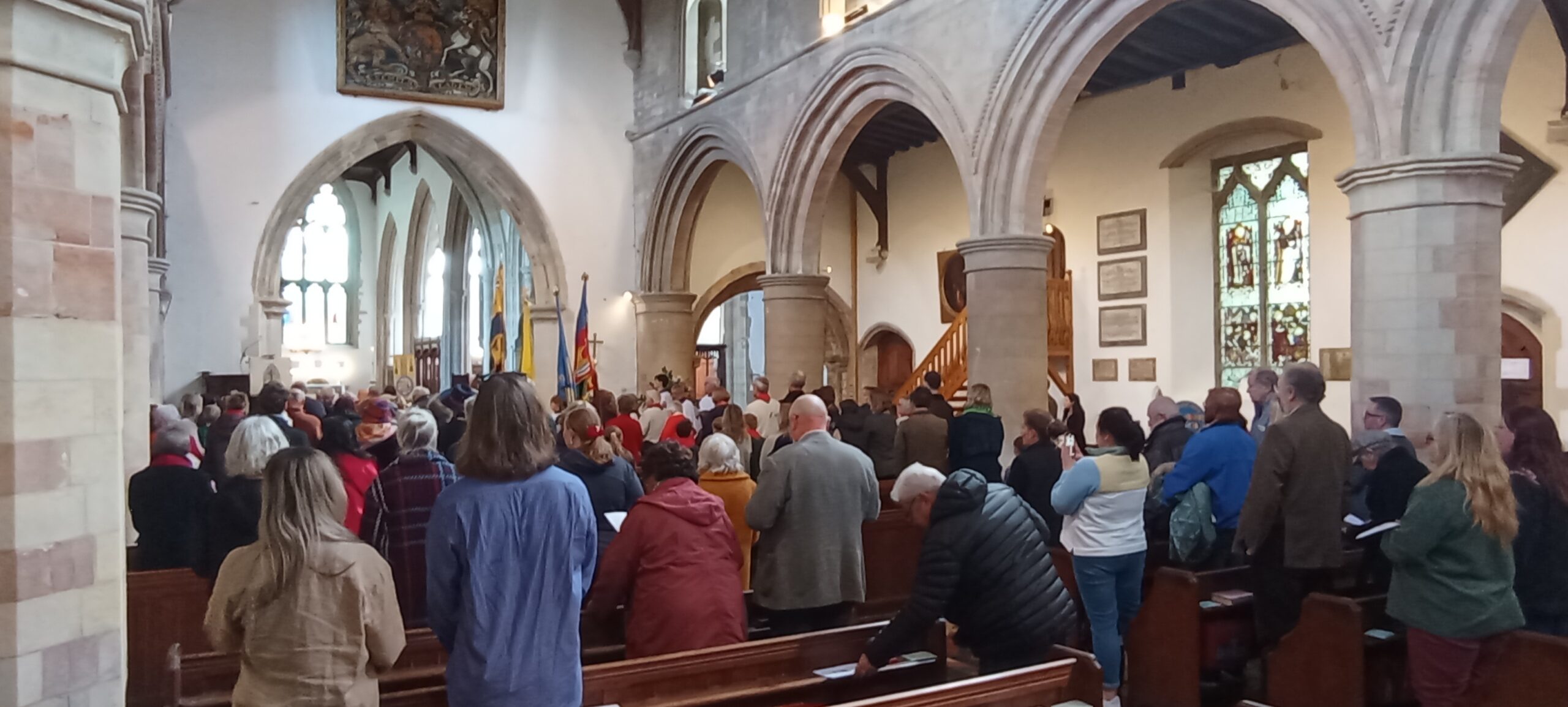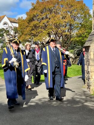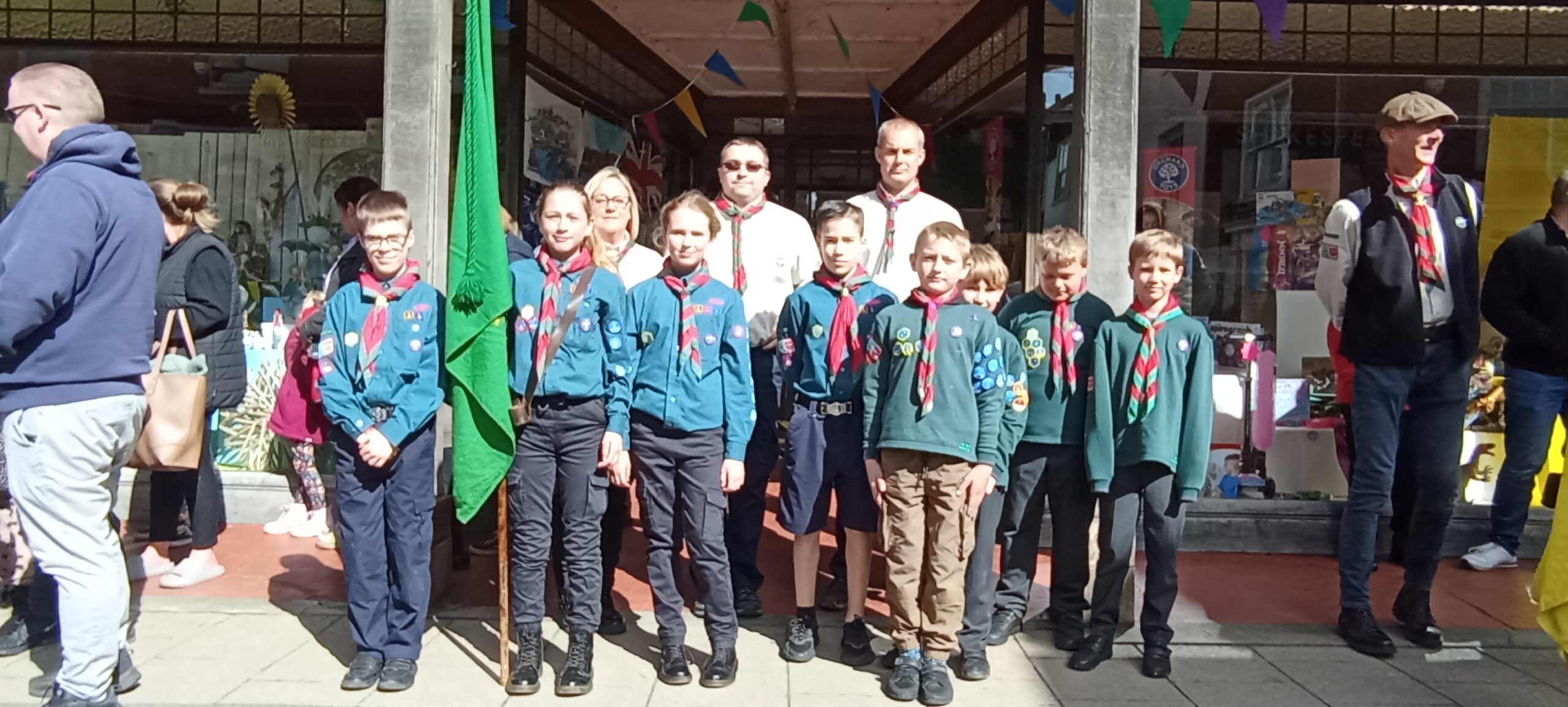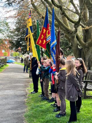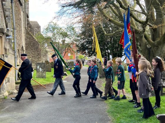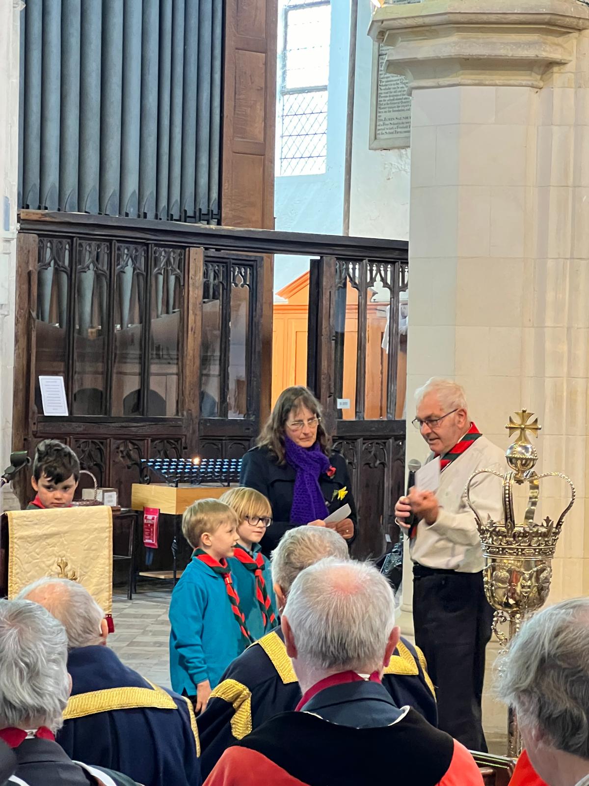 The procession made its way around to the rear of St Mary’s church then filed inside to the peel of bells, joining the waiting public as they took their positions. A brief service by the Revd Paul White followed during which scouts were sworn in and the scouts and brownies renewed their vows.