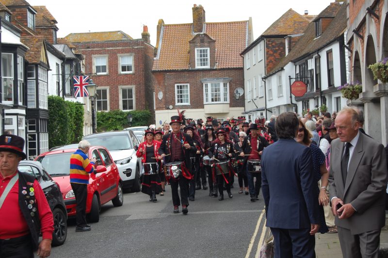 Jimper Sutton’s commemoration service took place at St Mary’s Church on Friday July 8. It was preceded by a procession of representatives of local bonfire societies, walking to a solemn drum beat, leading the funeral cortege through the streets of Rye, from Hilders Cliff to the door of the church.