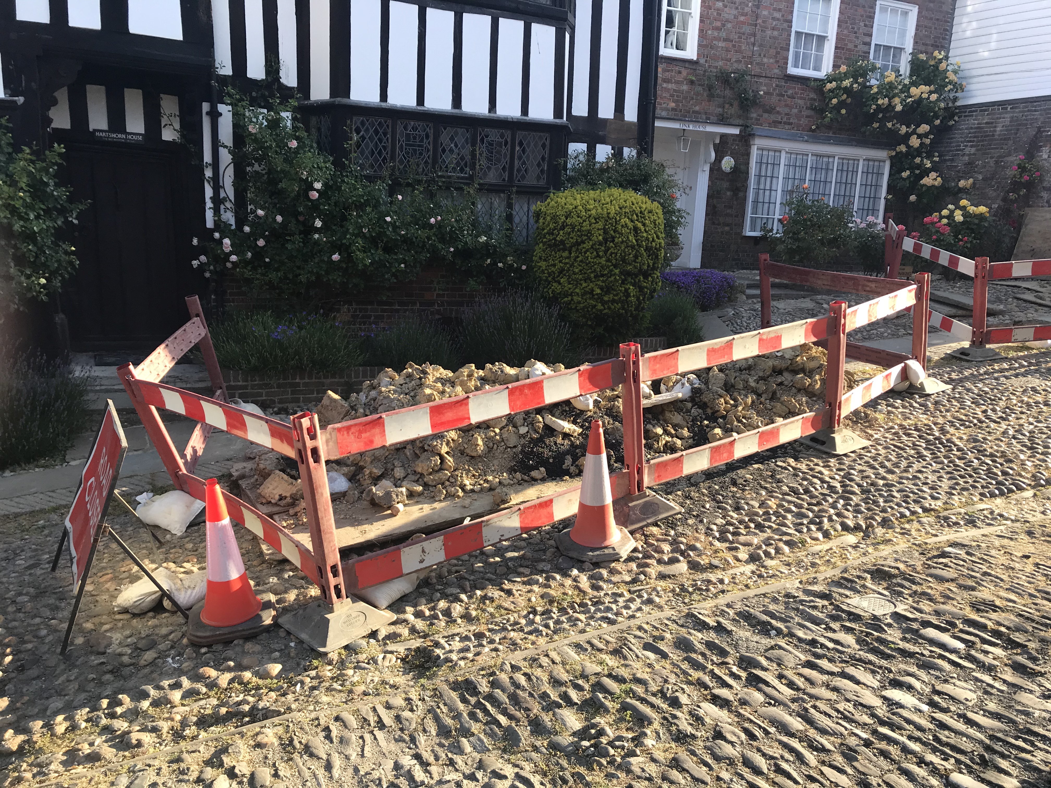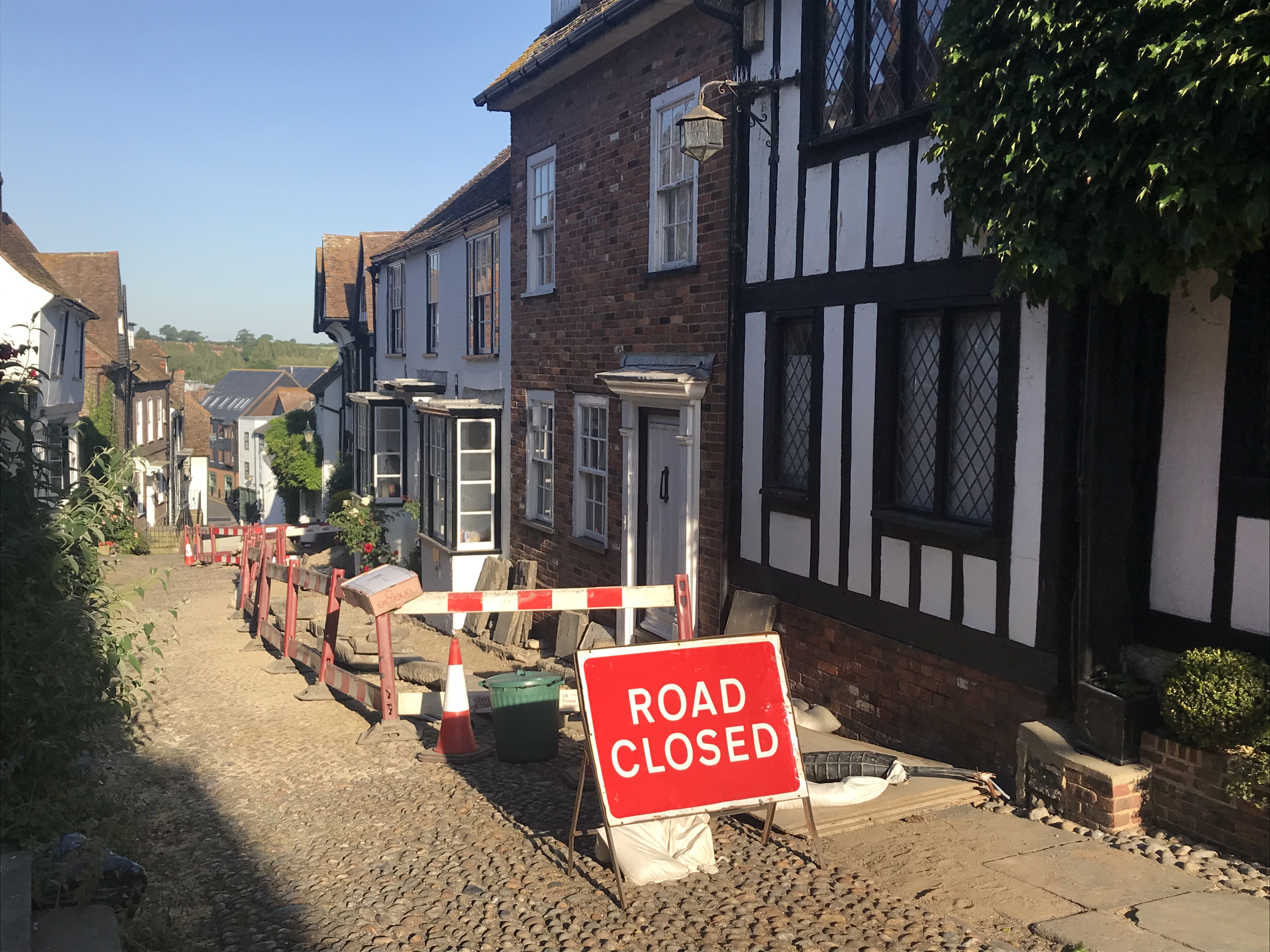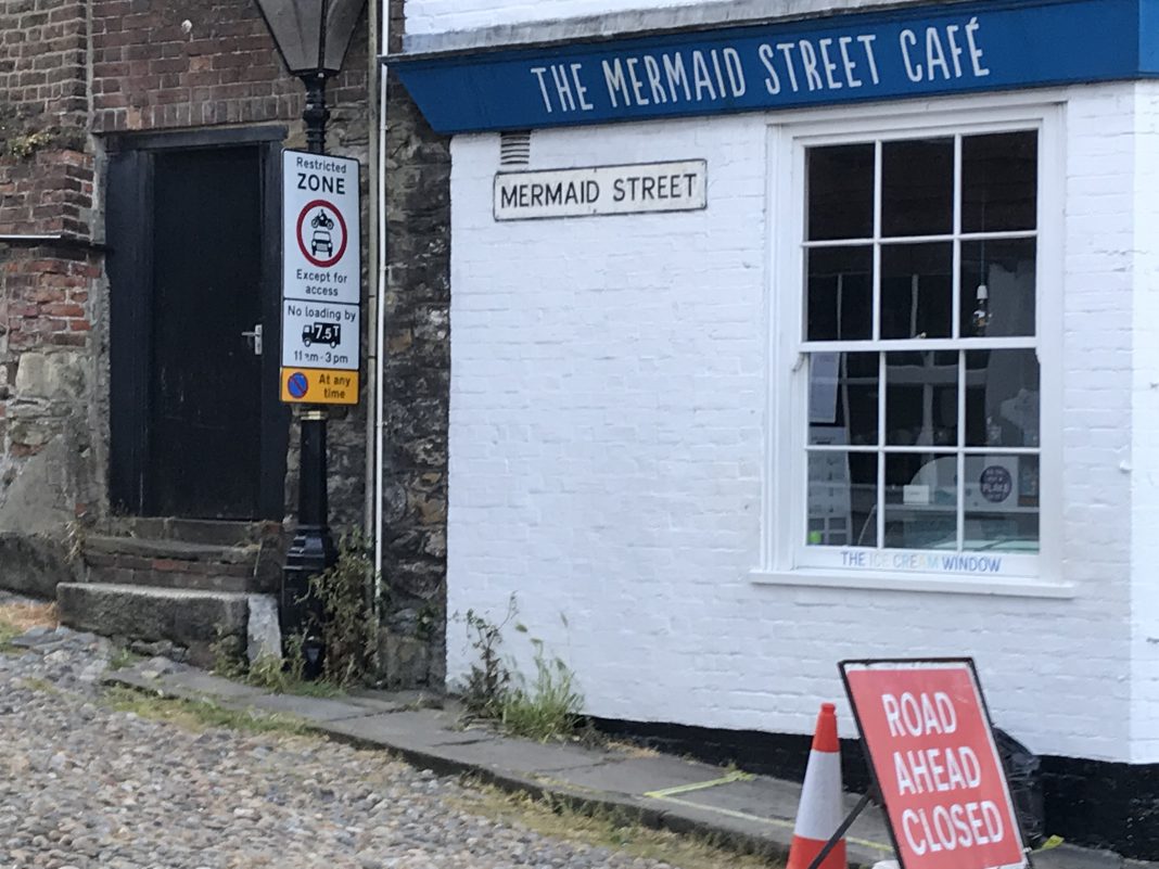 One of the main tourist attractions in Rye is, of course, Mermaid Street – and the Mermaid Inn, the cobbled street, the period houses, the history, intrigue and atmosphere attract tourists all year round. At the moment, though, Mermaid Street is closed to vehicles as UK Power Networks repair electrical faults deep beneath the cobbles.