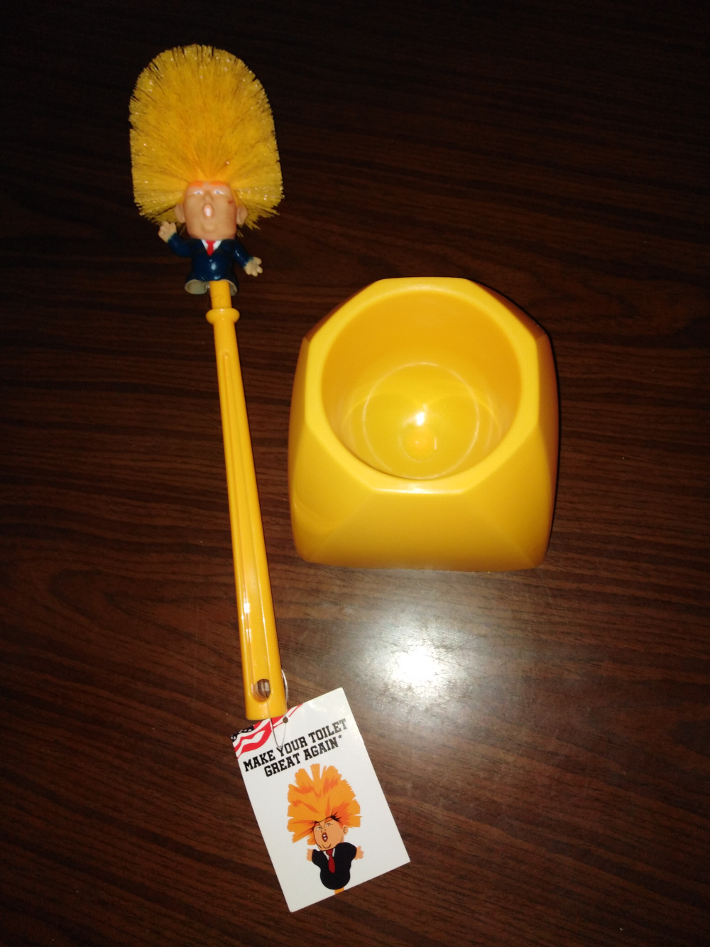 There will also be a silent auction for an essential item that every house needs – a Donald Trump toilet brush. Get ready to bid.