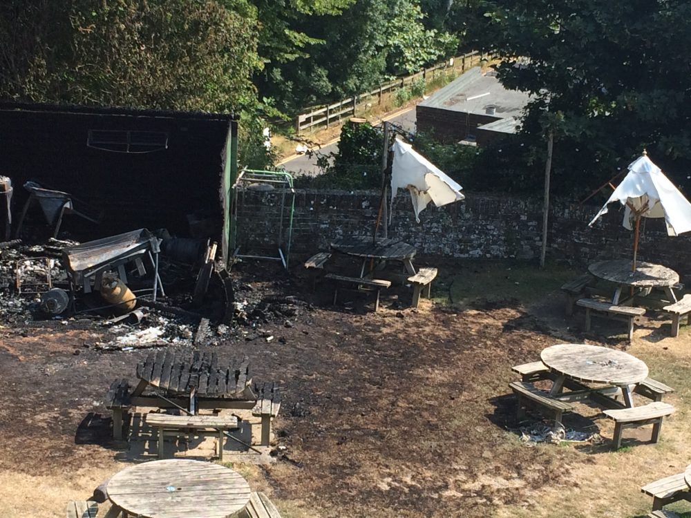 During the early hours of Sunday July 1 firefighter were called to a blaze at the Ypres Castle Inn. Fortunately the fire was started in an outbuilding in the pub garden and not in the pub itself. The outbuilding has been totally destroyed along with nearby tables and parasols. A large area of grass has also been scorched. There was no damage to the main building.