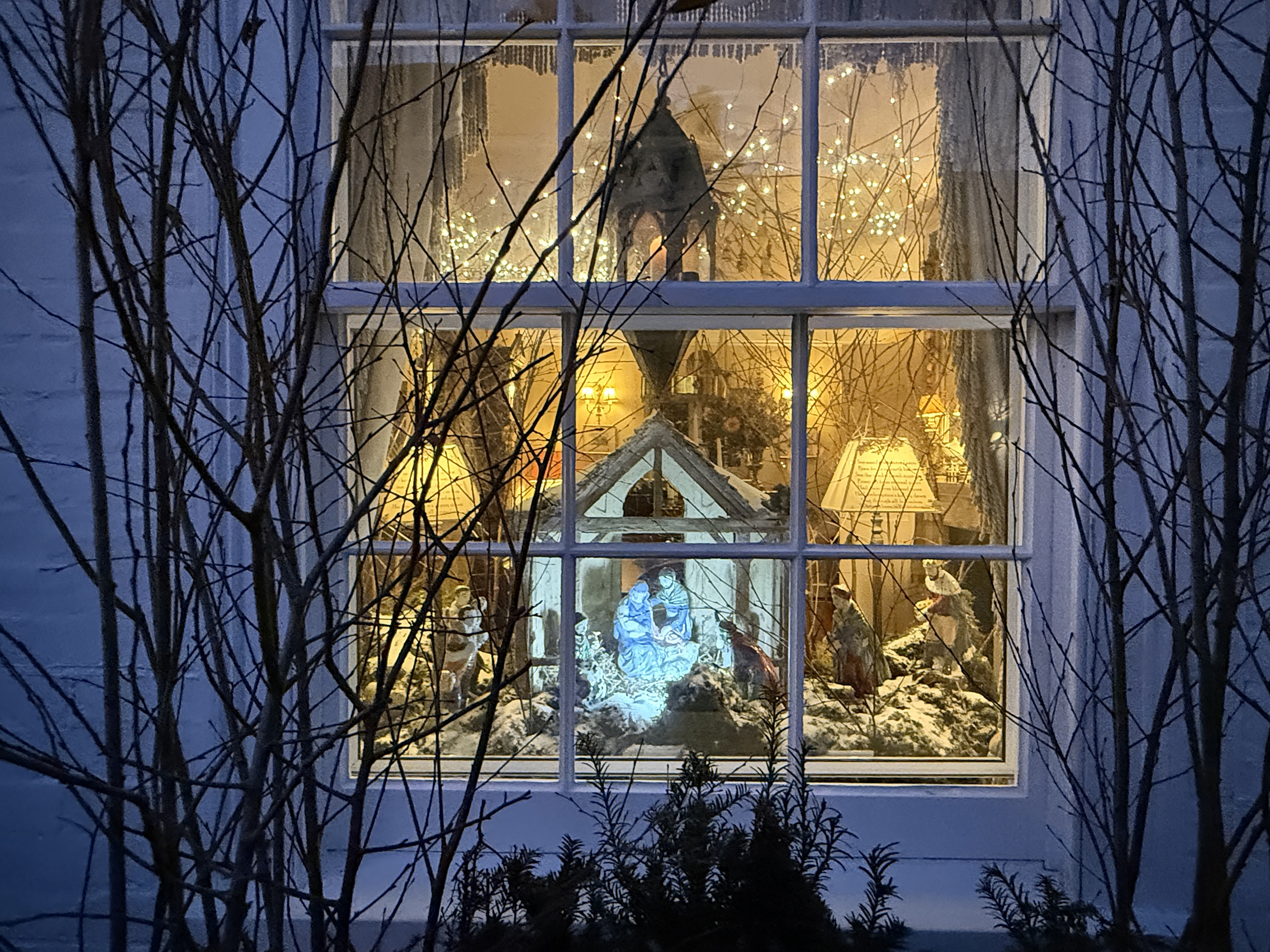 At 4:30pm on Saturday, December 14 the lights of twenty-eight windows, with inventive and engaging Christmas designs and tableaus, were switched on in Winchelsea. Debbie Cosstick, lady mayoress of Winchelsea, escorted me around the town to look at, and photograph, the windows.