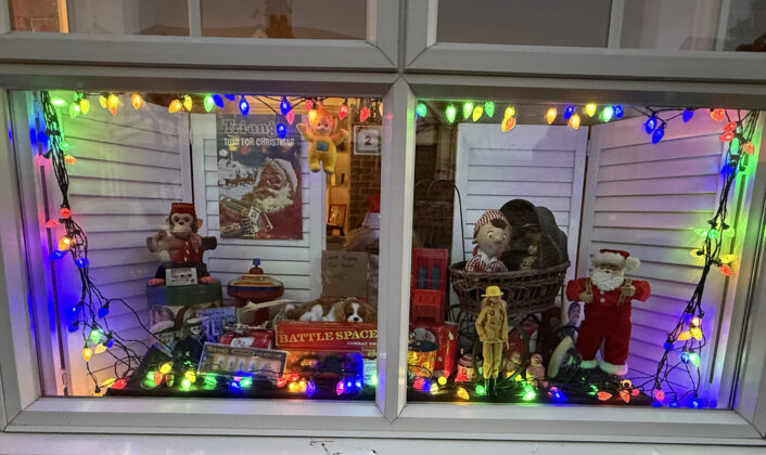 “So, if you’re bored with all the repeats on TV and have lost interest in that never-ending game of Monopoly, please visit Winchelsea for a stroll around town. The windows will be lit every evening from 4:30pm to 9pm until December 31. We look forward to seeing you. Please remember to bring a torch.”