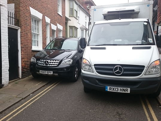 Yet again this morning the white van owned by Turner’s Fine Foods from Cranbrook caused obstruction in Lion Street, as the driver delivered to the George hotel. Despite repeated requests and the issue of a police parking ticket two years ago, the driver persistently blocks the street without any concern for other road-users or residents.