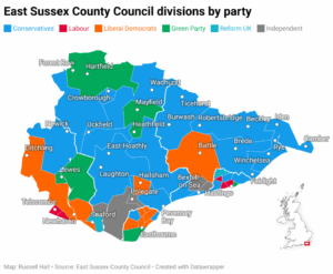 ESCC councillor party by ward until 2026 election called