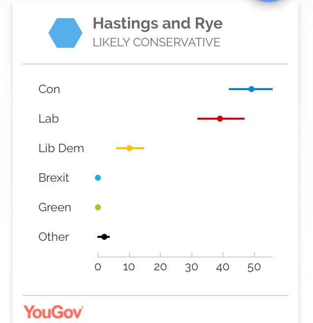 As the country goes to vote on Thursday, December 12 latest polling from YouGov predicts a likely win for the Conservatives in the Hastings & Rye constituency.