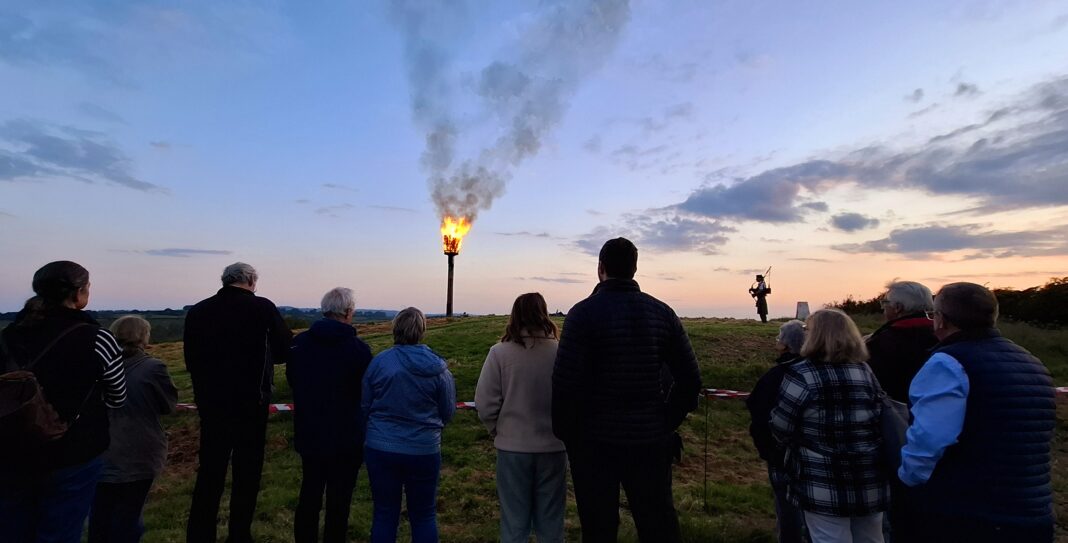 To the sound of a piper, David Merryfield and Neil Eastell lit the Winchelsea Beacon. On a beautiful bright evening, it was a dignified and moving ceremony.