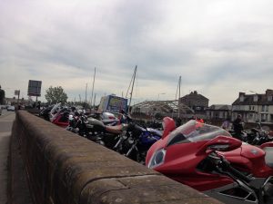 On arriving, all the bikers there were on their way to Hastings Jack in the Green celebrations, and the picture shows the throng of motorbikes and people. Perhaps it wasn’t raining in Hastings.
