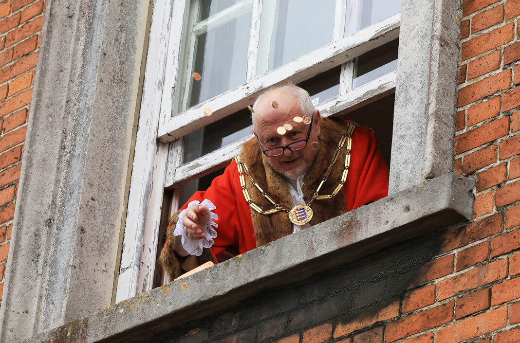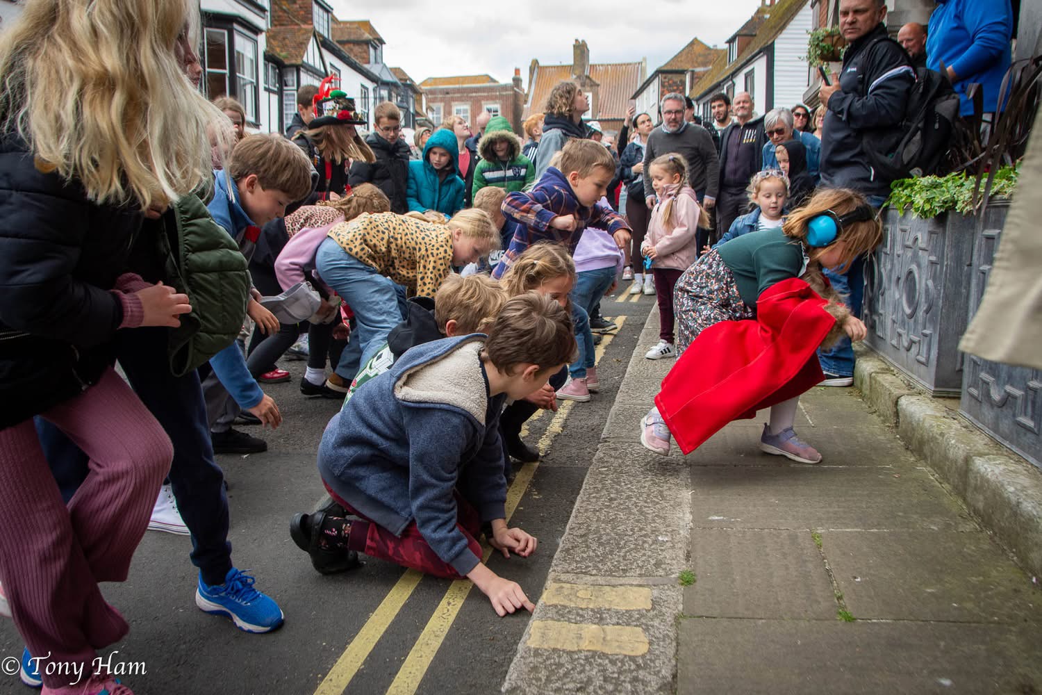 The most eagerly-awaited part of the day occurred after the mayoral party had returned to the town hall: the throwing of hot pennies to the children below in the street. You certainly had to be quick if you wanted one as the children darted energetically in and around the adults’ legs and were as quick as lightning. The joy on their faces was magical as they pocketed their treasures.