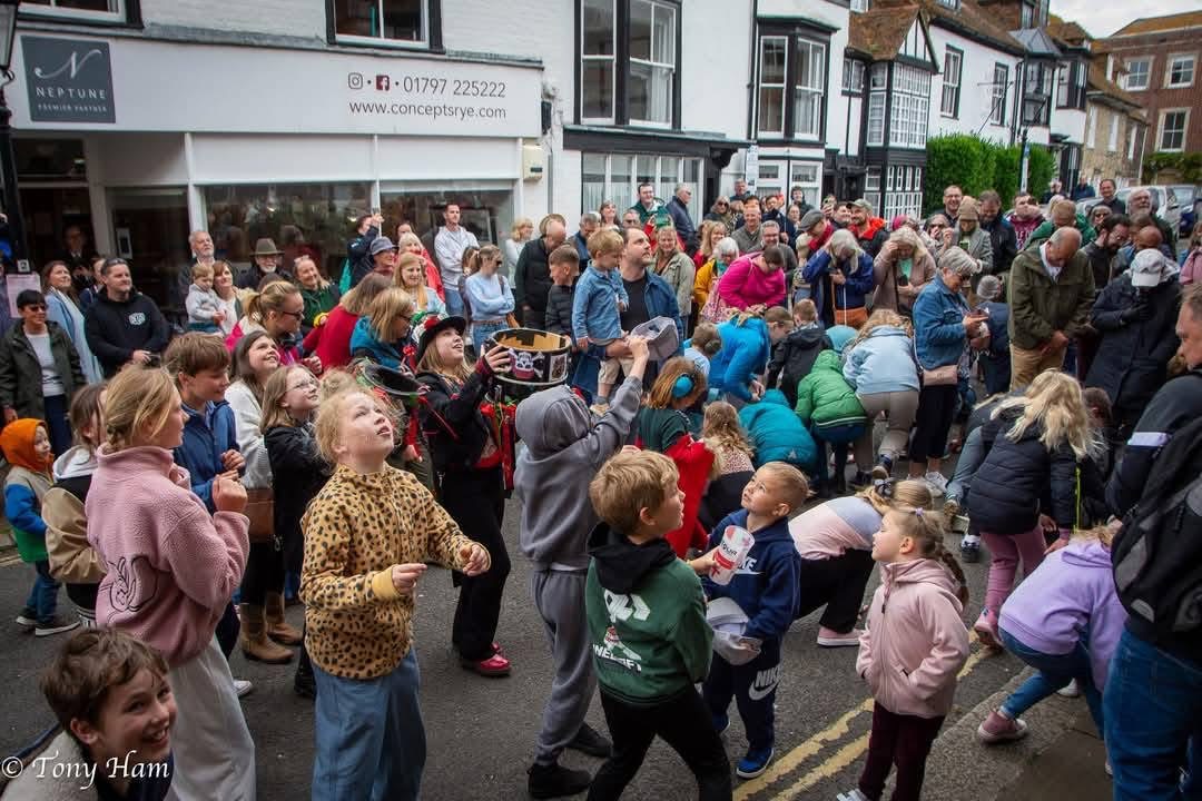 Ryebellion Drummers entertained the crowds and then escorted the mayor and mayoress to their home for the after-party with scrumptious curry from the Lemongrass and entertainment from the Rye Harbour Herrings singing shanties in the garden.