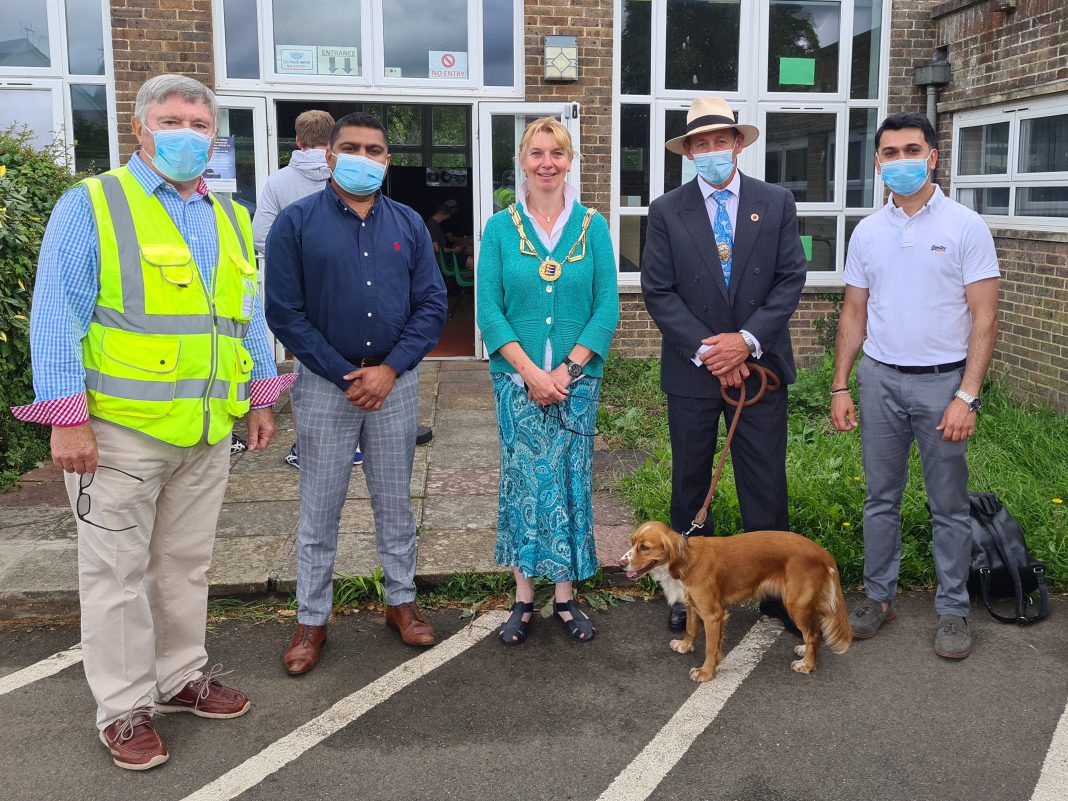 Last Sunday morning, July 24, the mayor of Rye, Councillor Rebekah Gilbert and deputy mayor, Councillor Andi Rivett dropped by the Rye vaccination centre to see progress. Their visit coincided with peak patient numbers for the day. Rye clinical lead, pharmacist Ankit Tyagi and colleague Tejas from the Ticehurst (Clarity) group of pharmacies took a brief moment to chat about the operating procedures that have been well developed in recent weeks. The mayor thanked the pharmacists and the dedicated group of volunteers, who register, marshal and vaccinate the patients.