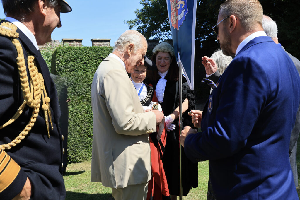 Rye and Winchelsea were well represented at Walmer Castle on Thursday, July 10 when the King met representatives from the fourteen Cinque Ports in a celebration of service to the community. The Rye contingent was led by Mayor Andy Stuart accompanied by his wife Niki, Deputy Town Clerk Jessica Neame and two chosen volunteers from the town. Winchelsea Mayor Peter Cosstick was also supported by an equivalent team.